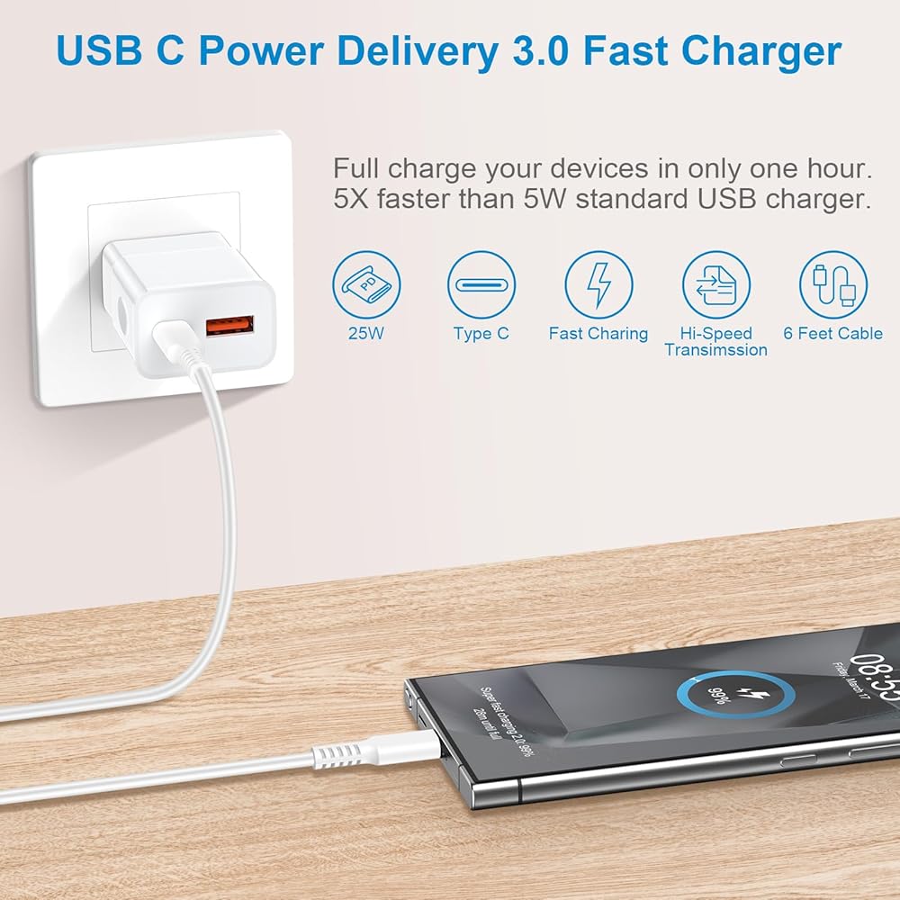 25W Samsung Fast Charger Type C Fast Charging Cable