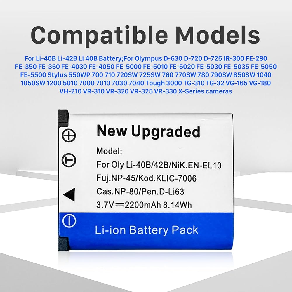 【متوافق】لبطارية Li-40B Li-42B Li 40B؛ لأوليمبوس D-630 D-720 D-725 IR-300 FE-290 FE-350 FE-360 FE-4030 FE-4050 FE-5000 FE-5010 FE -5020 FE-5030 FE-5035 FE-5050 FE-5500 ستايلس 550WP 700 710 720SW 725SW 760 770SW 780 790SW 850SW 1040 1050SW 1200 5010 7000 7010 703 0 7040 صعبة 3000 TG-310 TG-32 VG-165 VG-180 VH-210 VR-310 VR-320 VR-325 VR-330 كاميرات السلسلة X.