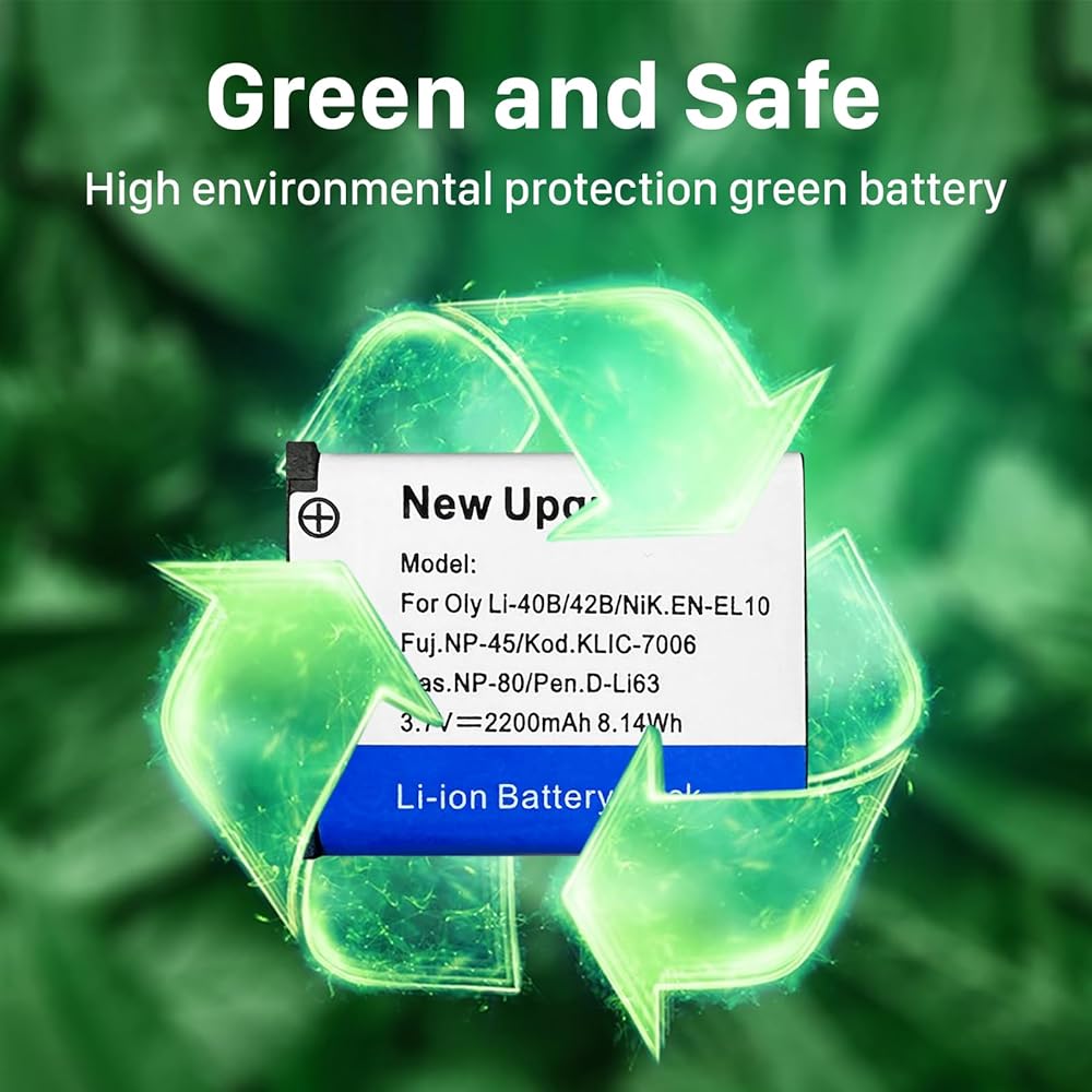 2 حزمة 2200 مللي أمبير بطارية وشاحن USB بديل لأوليمبوس Li-42B Li-40B Li42B Li40B FE-230 Pentax D-Li63 NP-45 NP-45A EN-EL10 D-Li63 D-Li108 NP-80 CNP80 KLIC-7006 البطارية