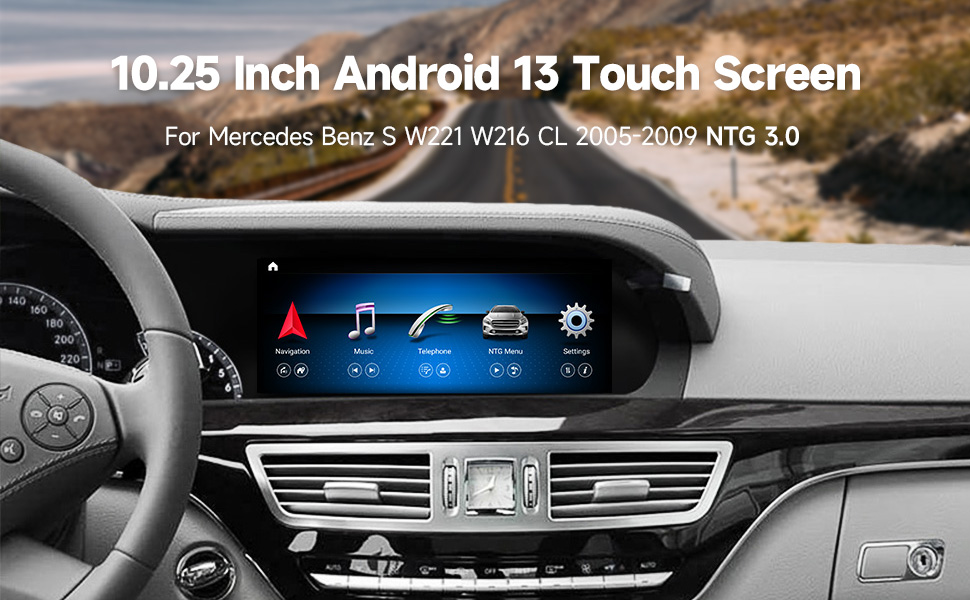 Android 13 شاشة لمس السيارة 10.25 بوصة 8 كور 4 جيجابايت رام + 64 جيجابايت روم راديو السيارة مشغل الوسائط المتعددة نظام تحديد المواقع للملاحة لمرسيدس بنز S W221 W216 CL 2005-2009 S-Class Head Unit (NTG 3.0)