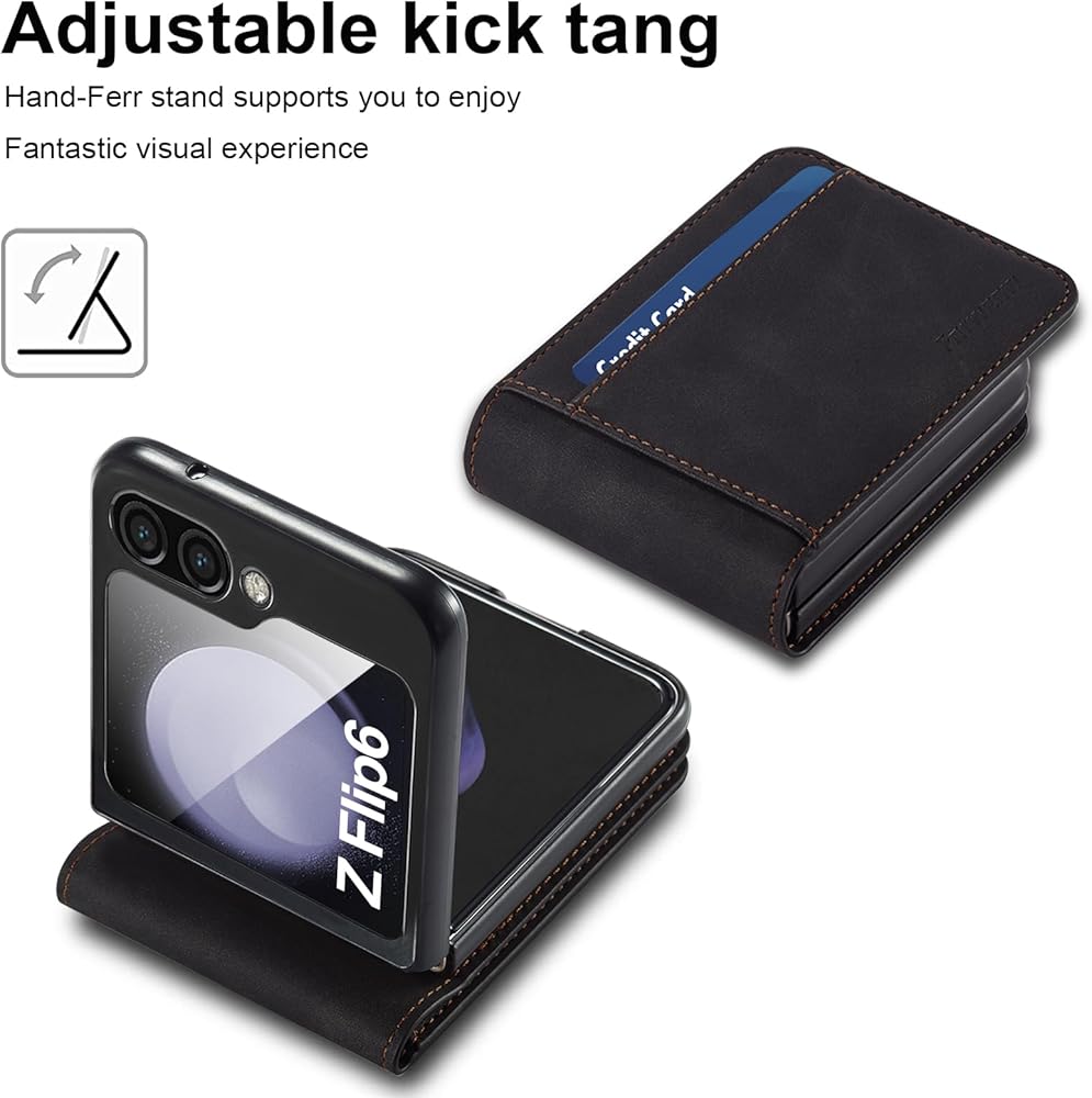 ✉【Premium Material】- The Galaxy Z Flip 6 Case is skin-friendly and feels comfortable. It is made of premium leather material to protect your phone from accidental moisture, bumps and scratches. Good quality and great looking case.