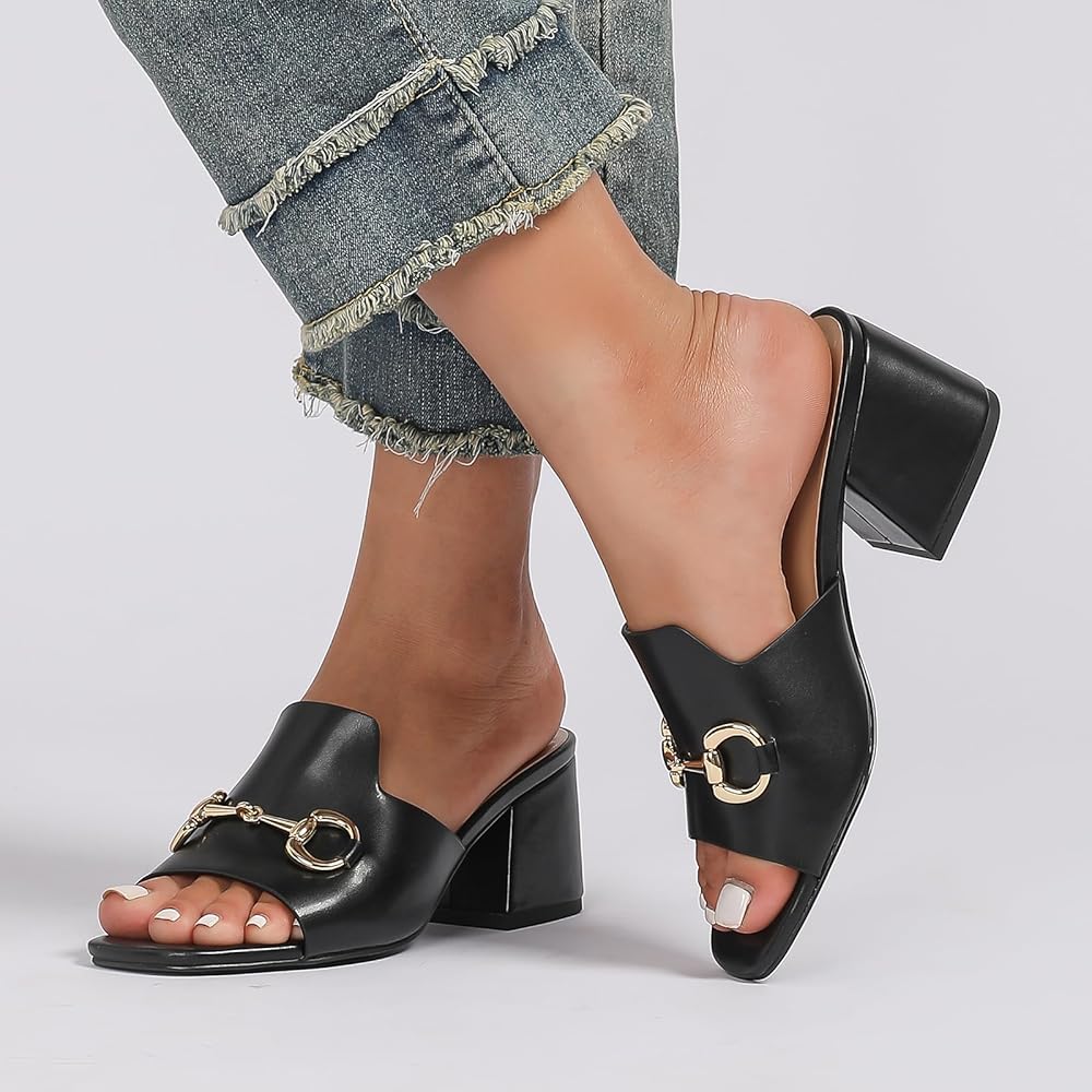 تصميم عصري: تتميز هذه الأحذية ذات الكعب الكلاسيكي المفتوح عند الأصابع وسلسلة معدنية أنيقة بتصميم فريد وعصري، مما يضمن تميزك بين الآخرين.