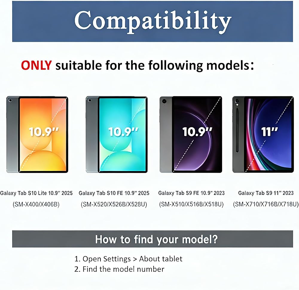 🌟【التوافق: مصمم حصريًا لجهاز Samsung Galaxy Tab S9 FE 10.9 بوصة 2023 (SM-X510/ X516B/ X518U) وGalaxy Tab S9 11 بوصة 2023 (SM-X710/ X716B/ X718U). لا يناسب طرازات أجهزة سامسونج اللوحية الأخرى.