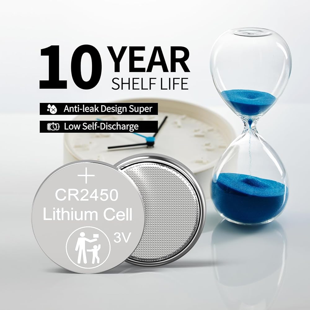 【جهد الإخراج المستقر】 تعمل بطاريات CR 2016 3 فولت على إخراج الجهد الكهربي بشكل ثابت في جميع الفصول من -4 درجة فهرنهايت إلى 140 درجة فهرنهايت. مضاد للتسرب، تفريغ ذاتي منخفض، عمر افتراضي طويل 10 سنوات.