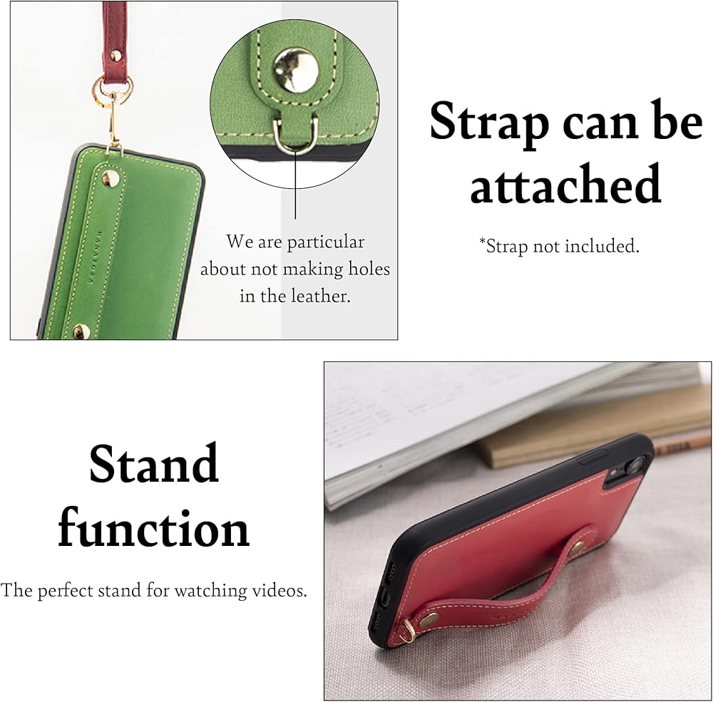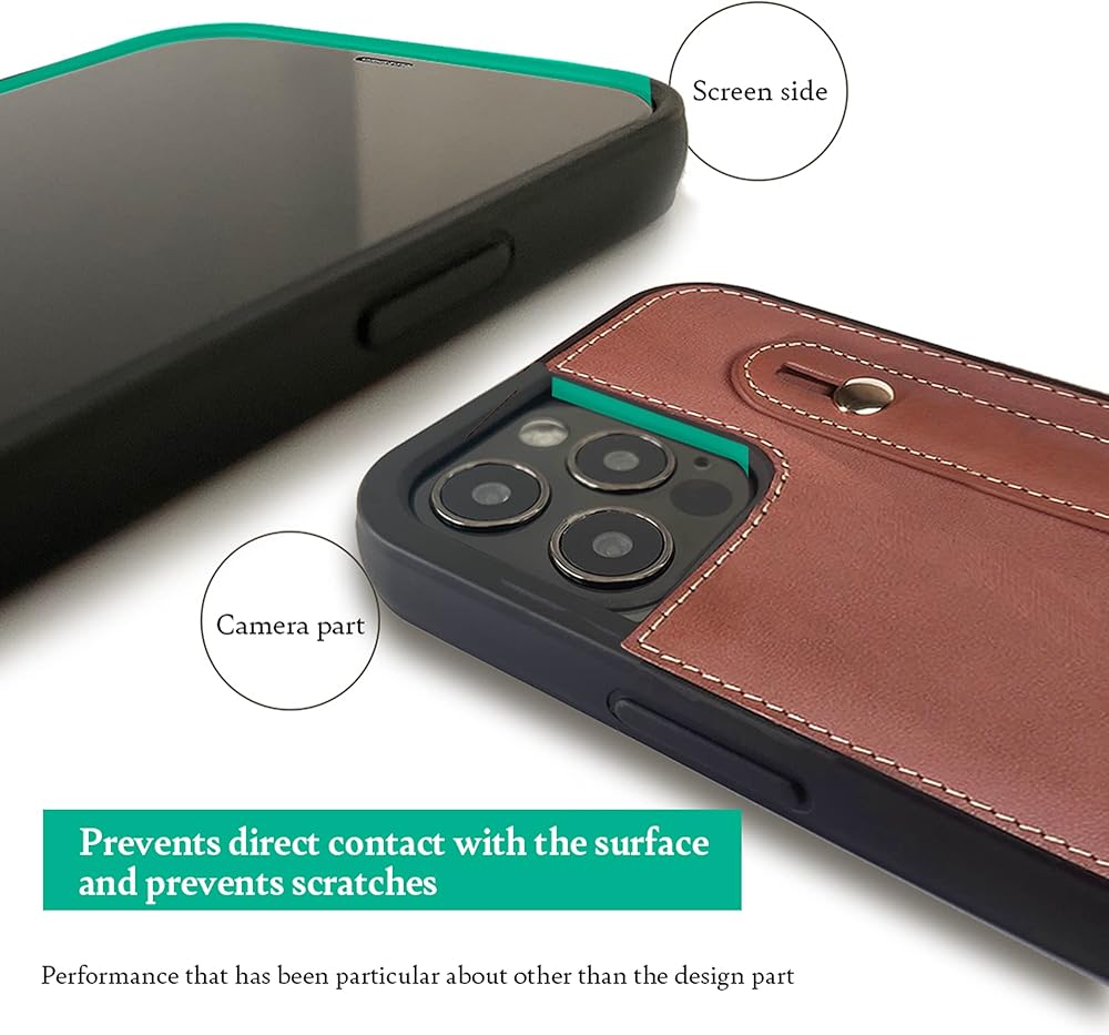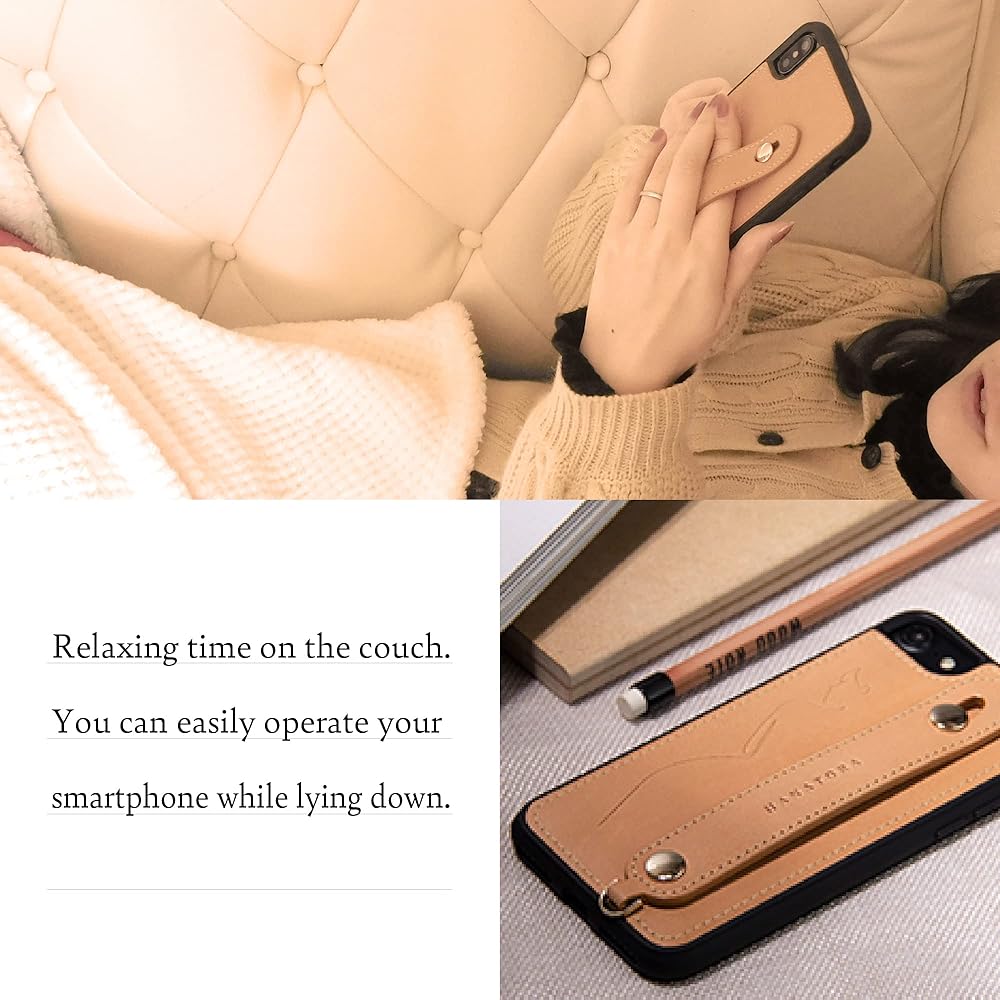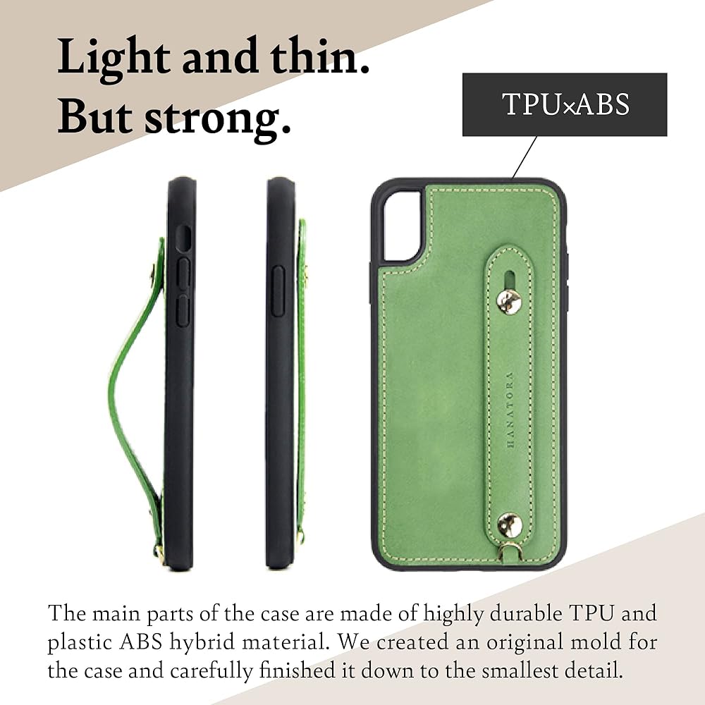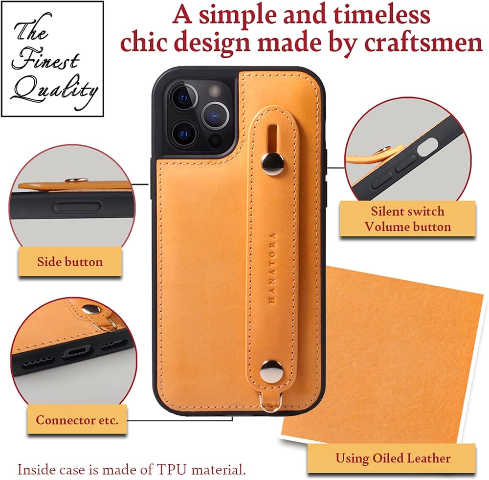 Hanatora - جراب هاتف iPhone 13 صغير من الجلد الإيطالي مصنوع من الجلد الإيطالي، جراب هاتف ذكي لمنع السقوط، وظيفة الوقوف، حزام عملي، حزام يدوي، تصميم سادة باللون الأزرق السماوي GH-13 Mini-Blue-M