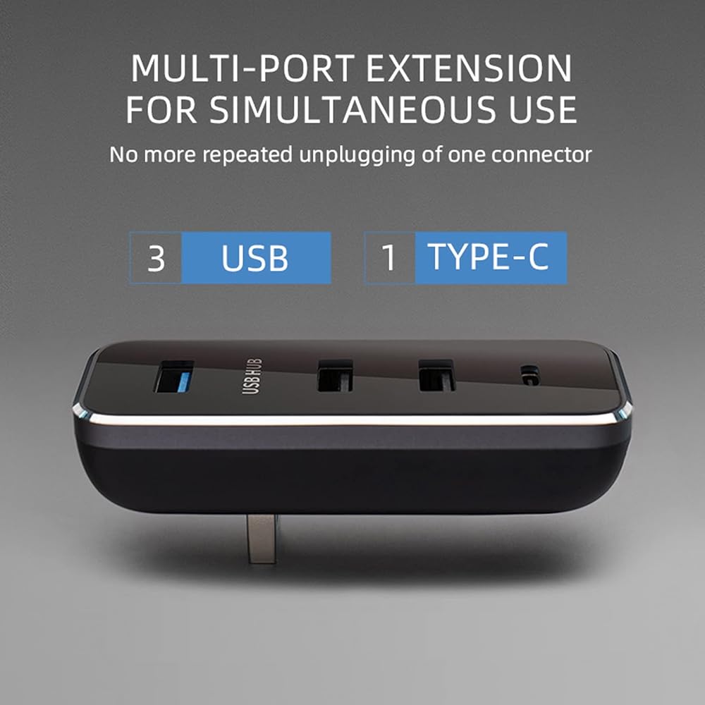 【Multi Function Hub】This hub has 3 USB ports and 1 USB C port for powering compatible devices or transferring data, such as gamepad charging, music data, and more.