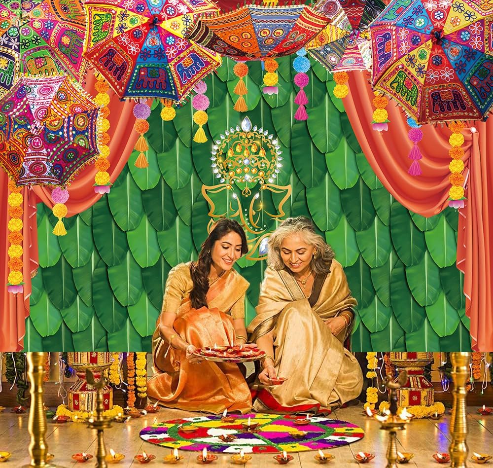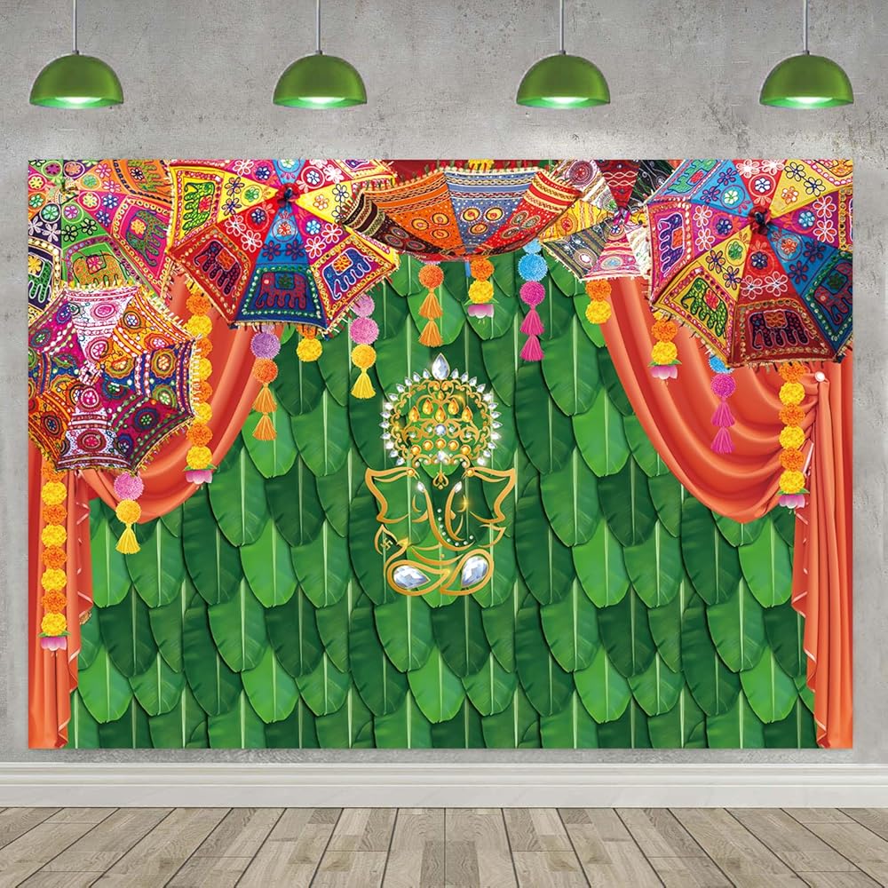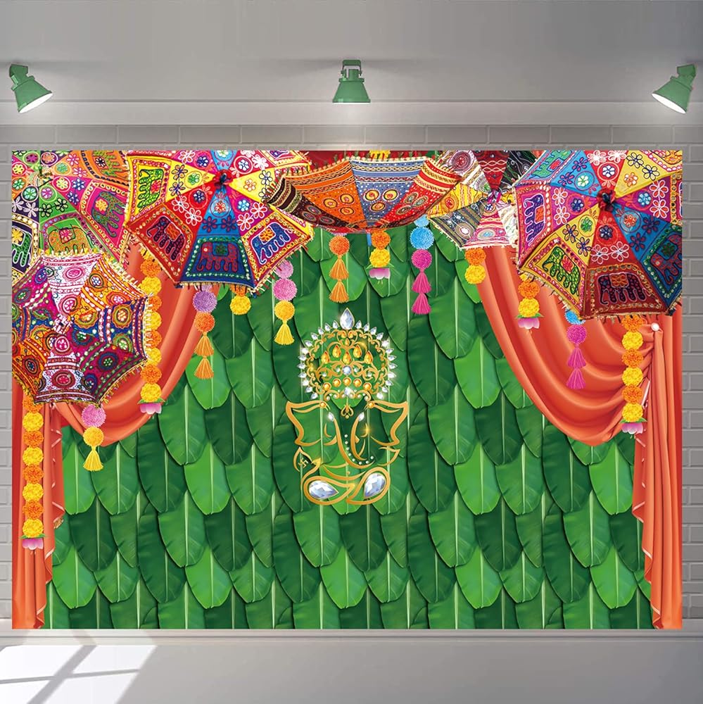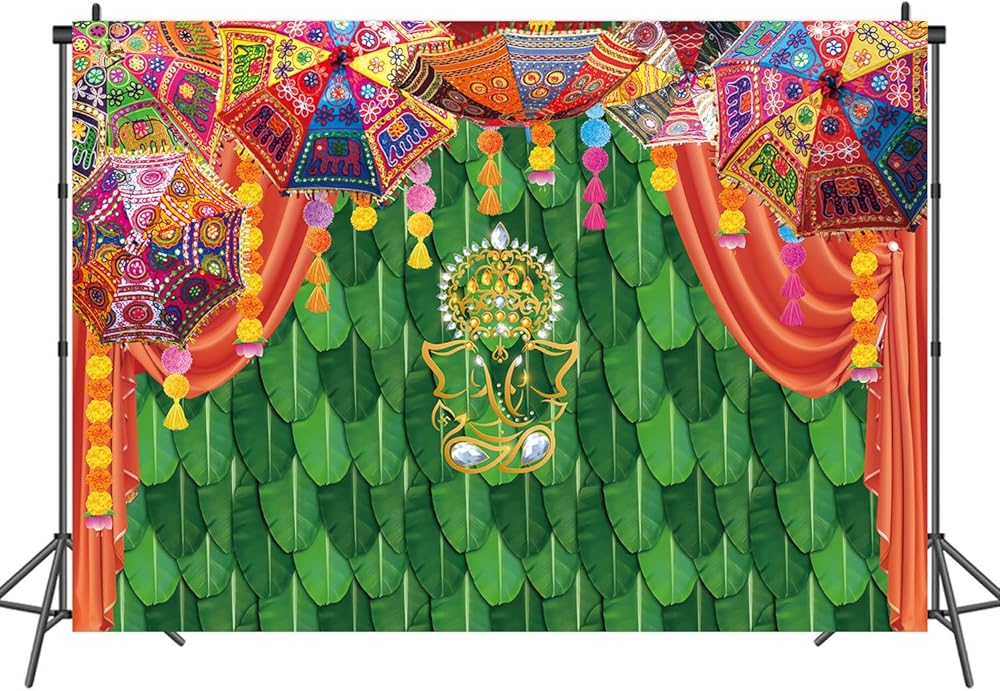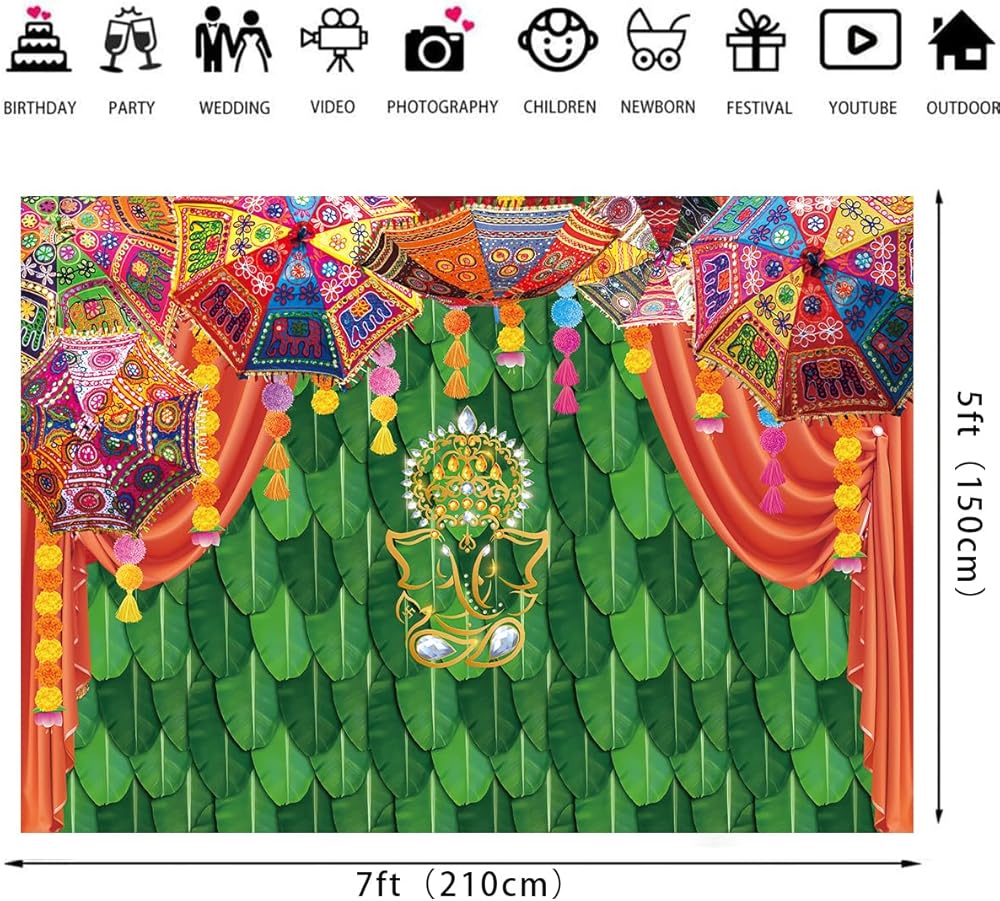 الهند بوجا التقليدية خلفية ديوالي جانباتي شاتيا غانيش صورة خلفية القطيفة الموز يترك موقع قران راية لحفل زفاف ديني استحمام الطفل ديكور صور الدعائم (7X5FT (82 × 59 بوصة))