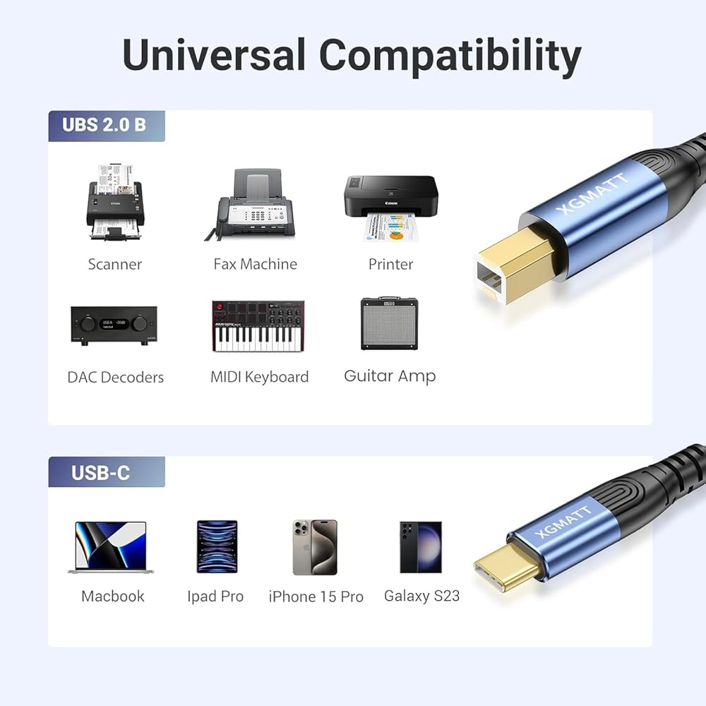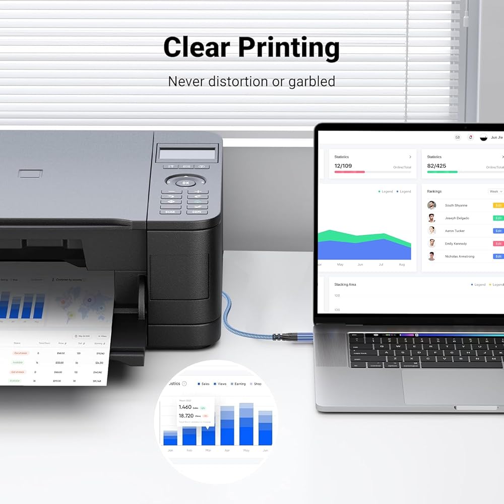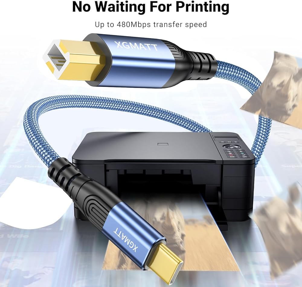 【Fast and data transfer 2 in 1】The USB C Printer cable supports data transfer speeds of up to 480 Mbps , and can work at maximum power when use with Printer cable.