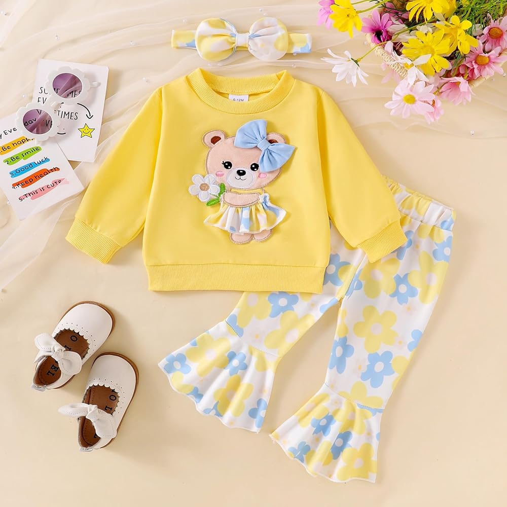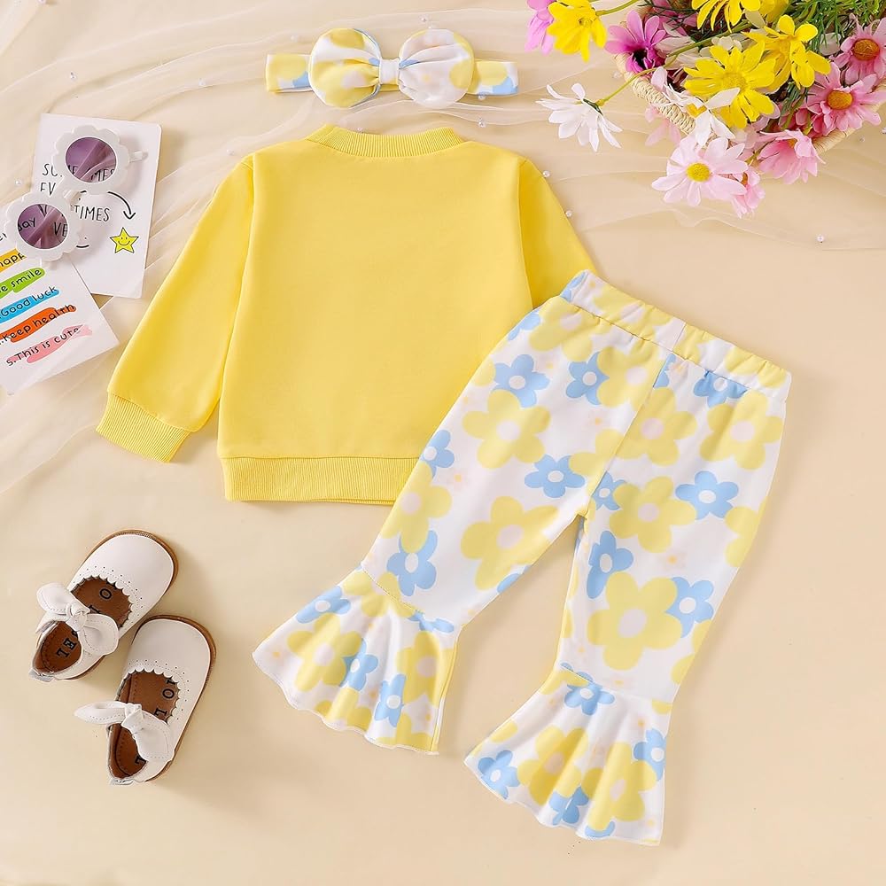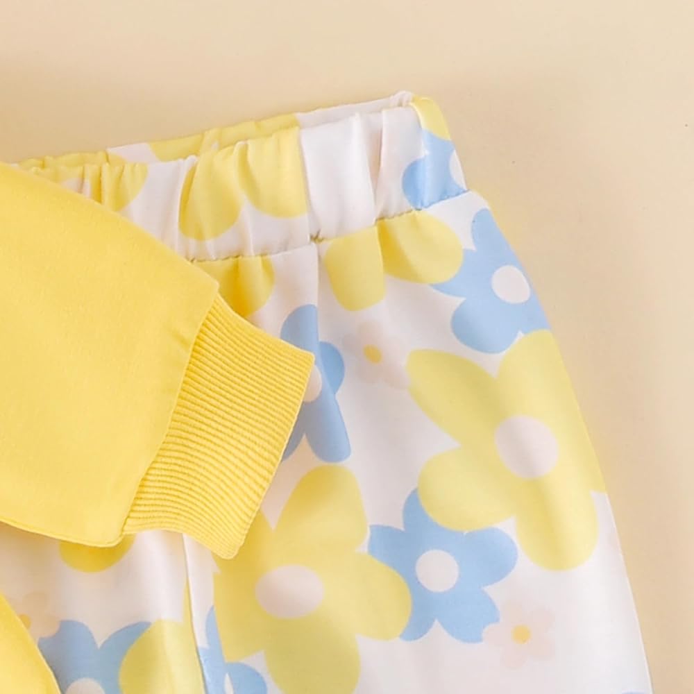 تتضمن العبوة 1 × سويت شيرت للفتيات الصغيرات، 1 × بنطال واسع بطبعة زهور للفتيات الصغيرات، و1 × عصابة رأس للفتيات الصغيرات. توفر مجموعة الملابس المتناسقة هذه مظهرًا أنيقًا ورائعًا.