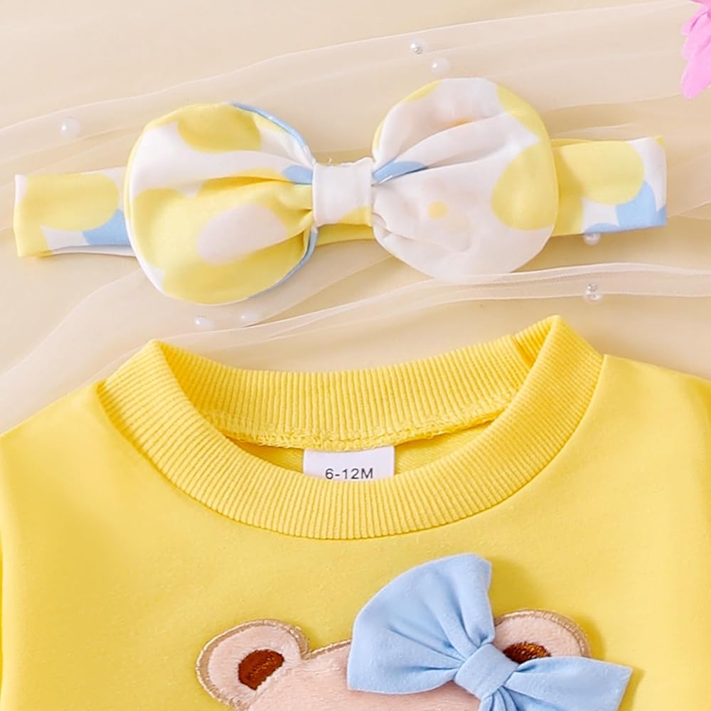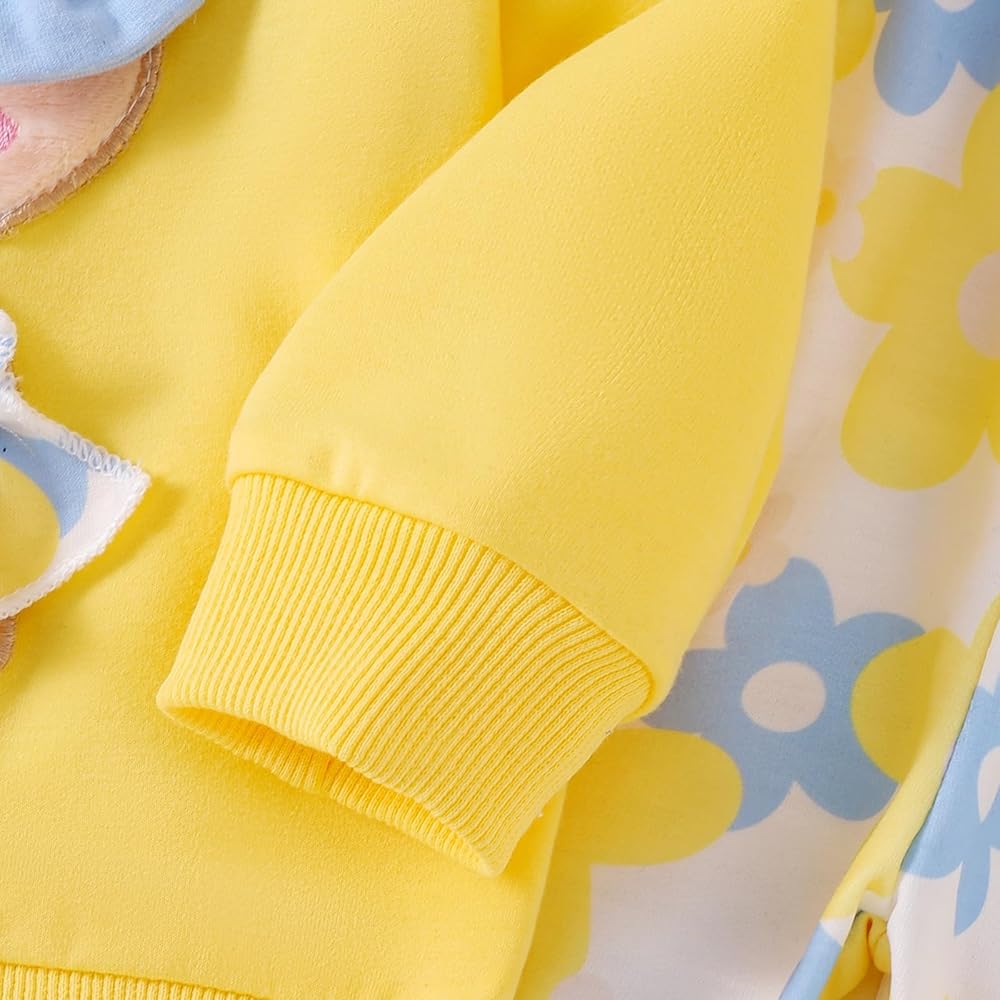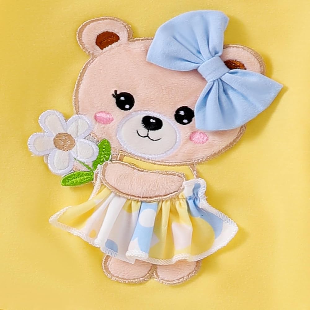 تصميم فريد ومرح: يتميز بتصميم الدب الساحر على السترة، مكملاً بلمسات من الزهور والفيونكة، ويظهر هذا الزي أسلوبًا مرحًا ولطيفًا. يضيف البنطال المطبوع بالزهور لمسة من الحيوية وبراءة الطفولة، مما يجعل طفلك يبدو مفعمًا بالحيوية والمرح.