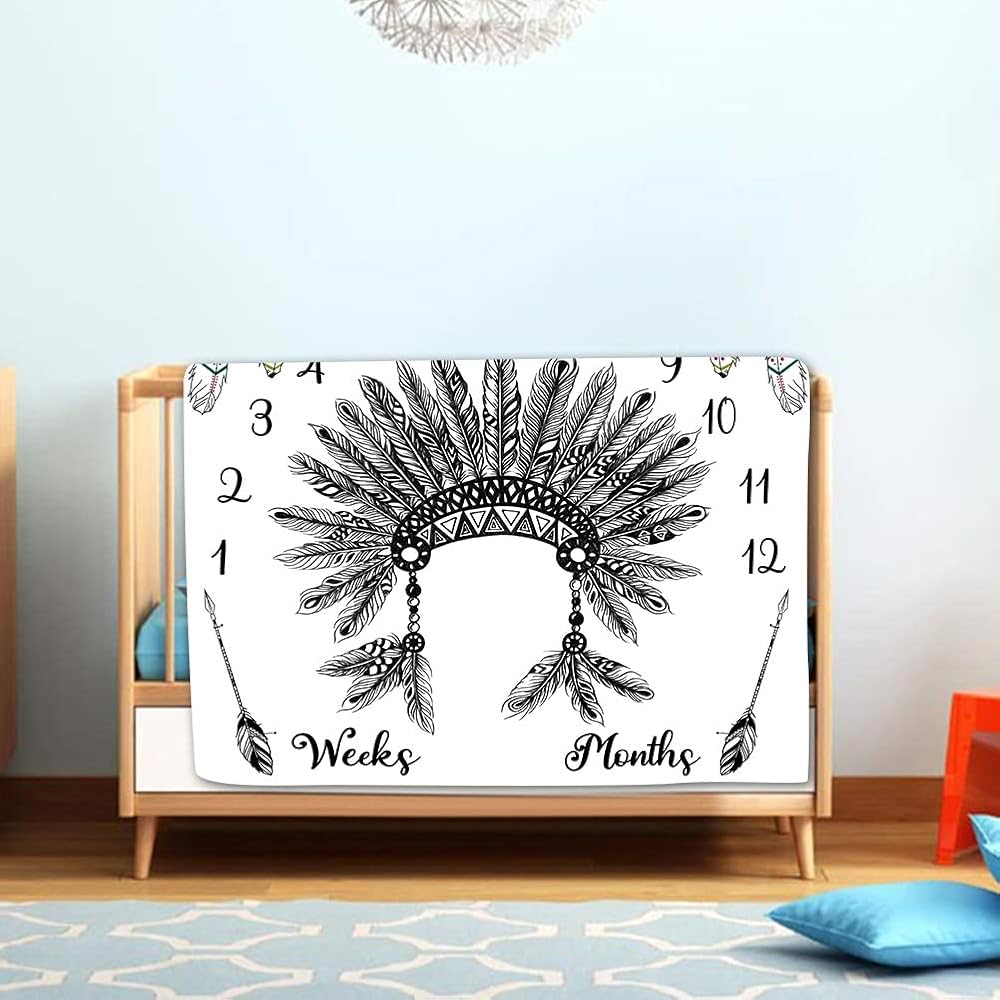 بوهو الطفل العمر بطانية، القبلية الأفريقية البدائية رئيس الهندي الطفل مايلستون بطانية المولود الجديد صورة الطفل الذاكرة بطانية العمر بطانية، 48x40 بوصة الطفل قماط بطانية BTLSLY645