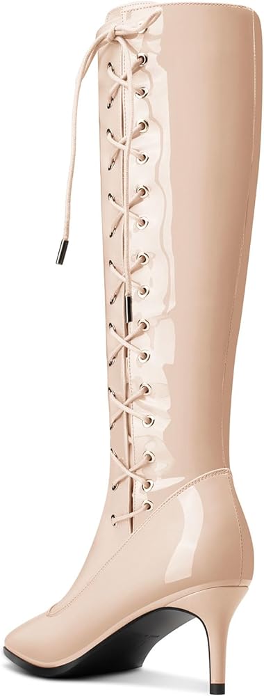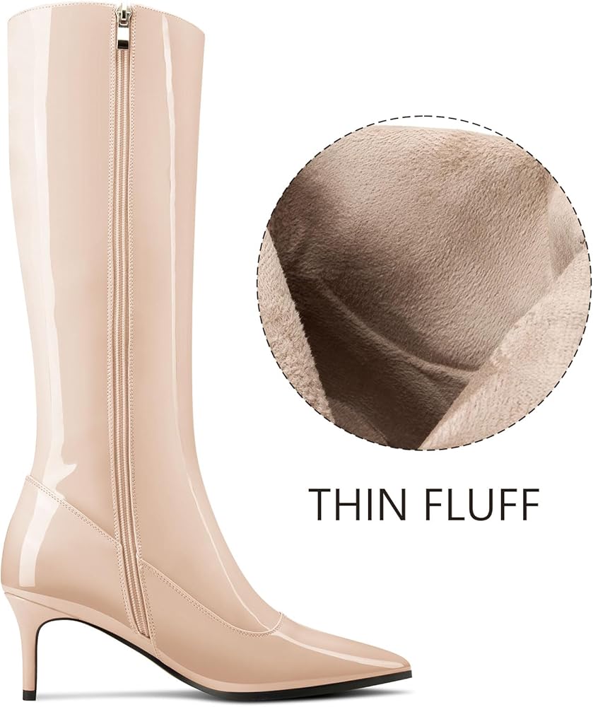 - تتميز هذه الأحذية النسائية عالية الركبة بمقدمة مدببة أنيقة تضيف لمسة من الأناقة.