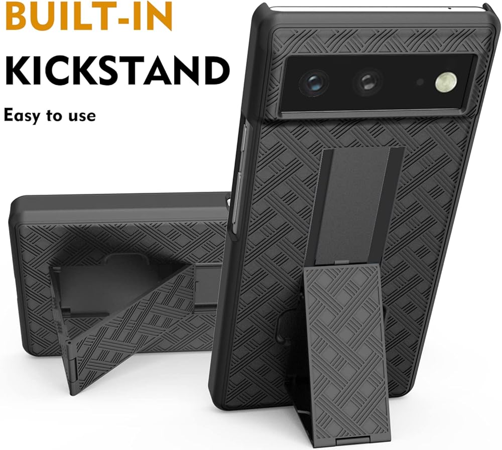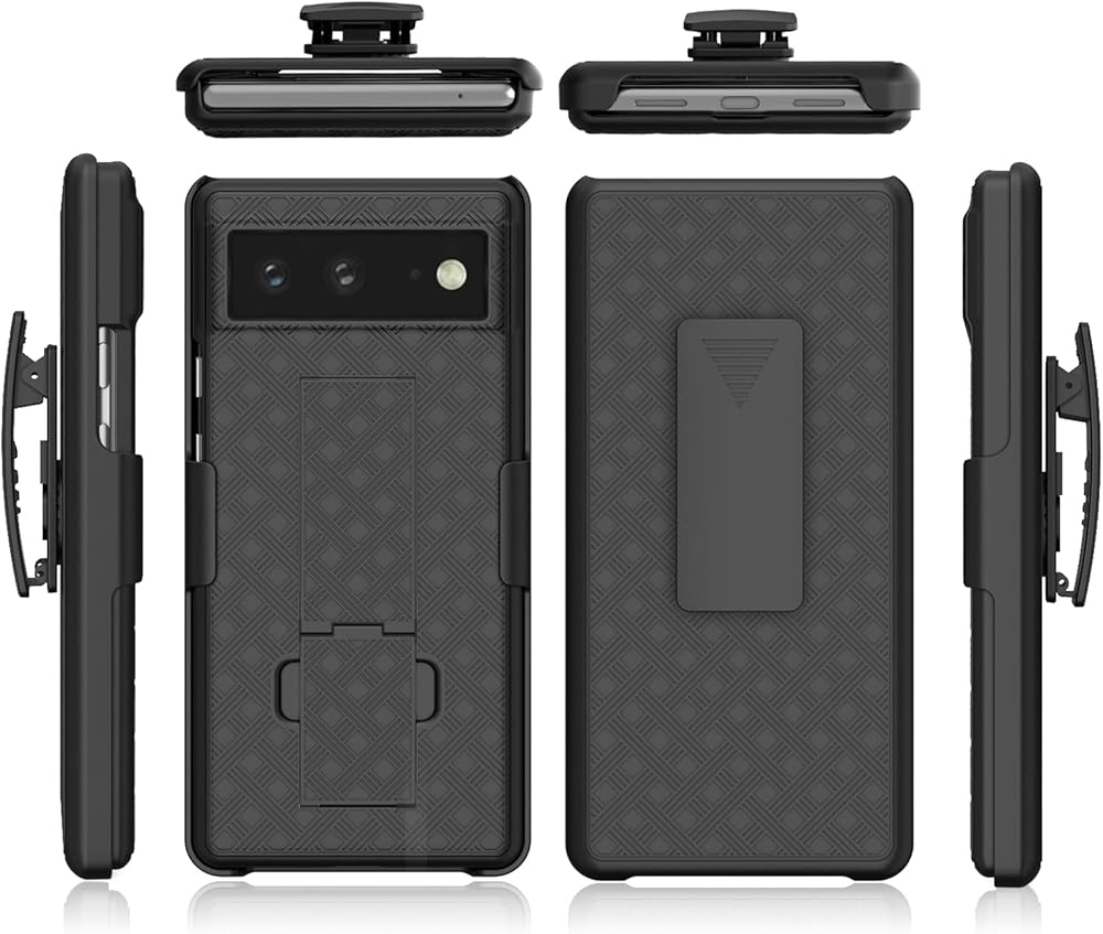 • Google Pixel 6 Hybrid Combo Case: Precise cutouts allowing access to camera, home button, headphone jack, microphone etc, Great side grips and clip holds tight to clothing. The low profile keeps carrying the phone from feeling bulky.