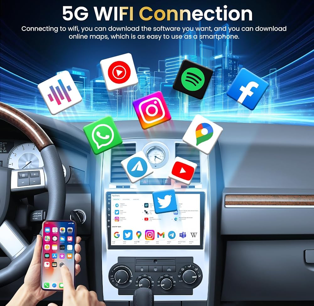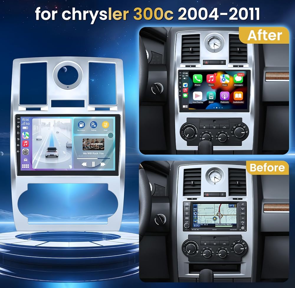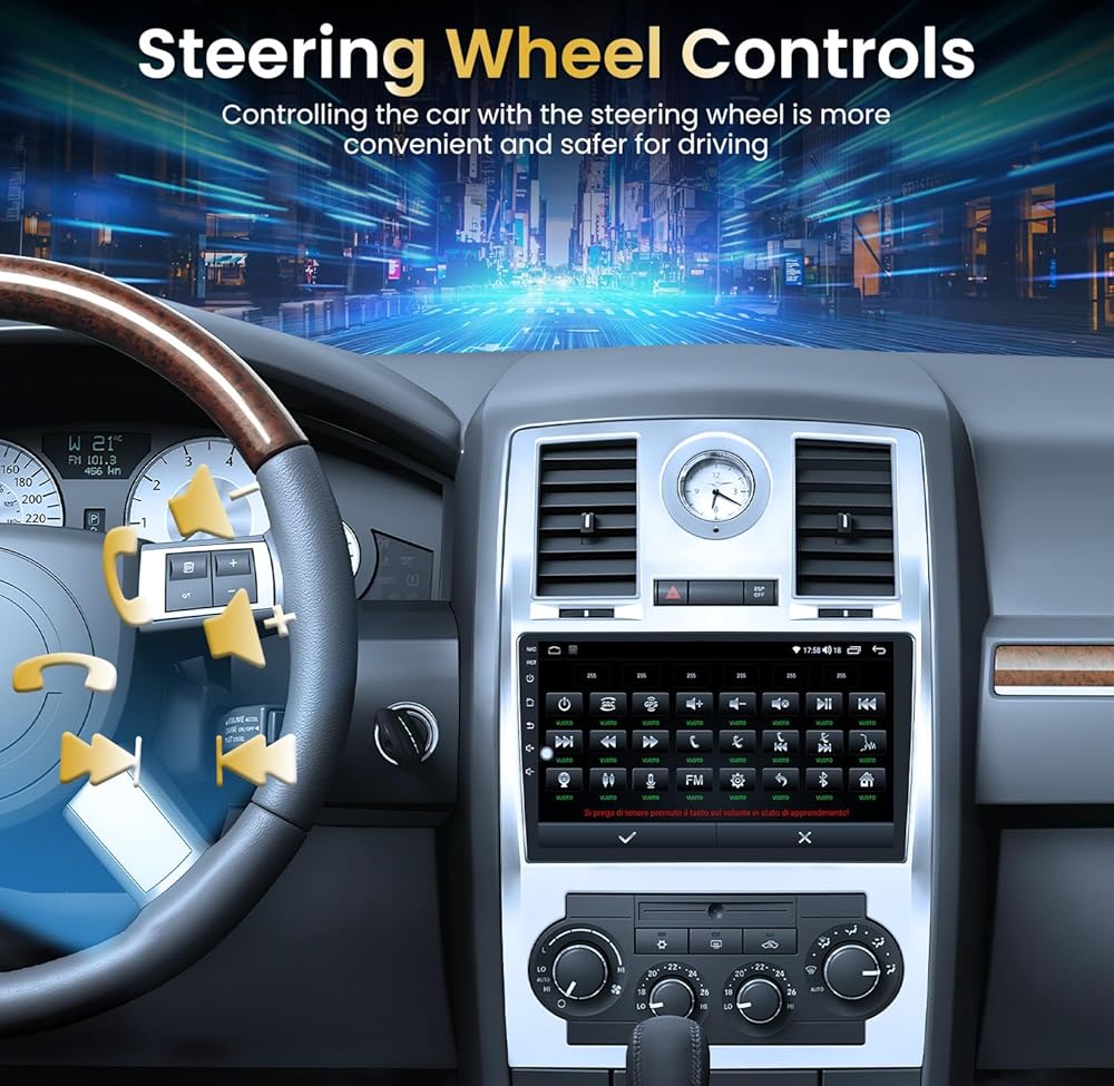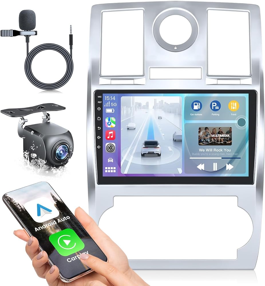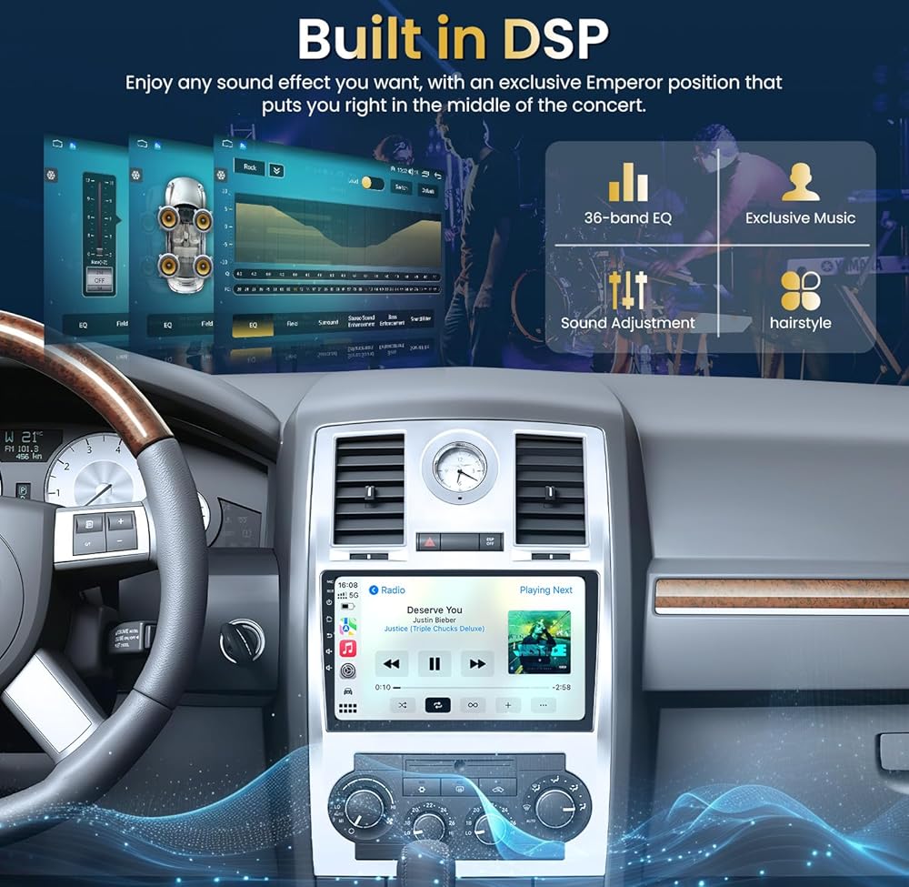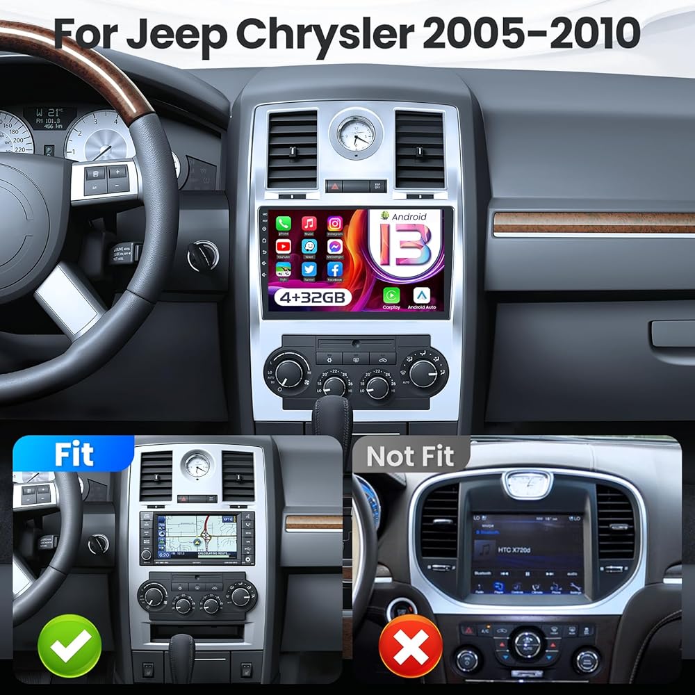 راديو السيارة لسيارة Jeep Chrysler 300C 2004-2011 ستيريو: (4G+32G) ترقية Android 13 5GWiFi 9 بوصة 1280 * 800 وحدة رأس شاشة تعمل باللمس - Carplay Android Auto Bluetooth 5.0 DSP FM GPS SWC كاميرا احتياطية