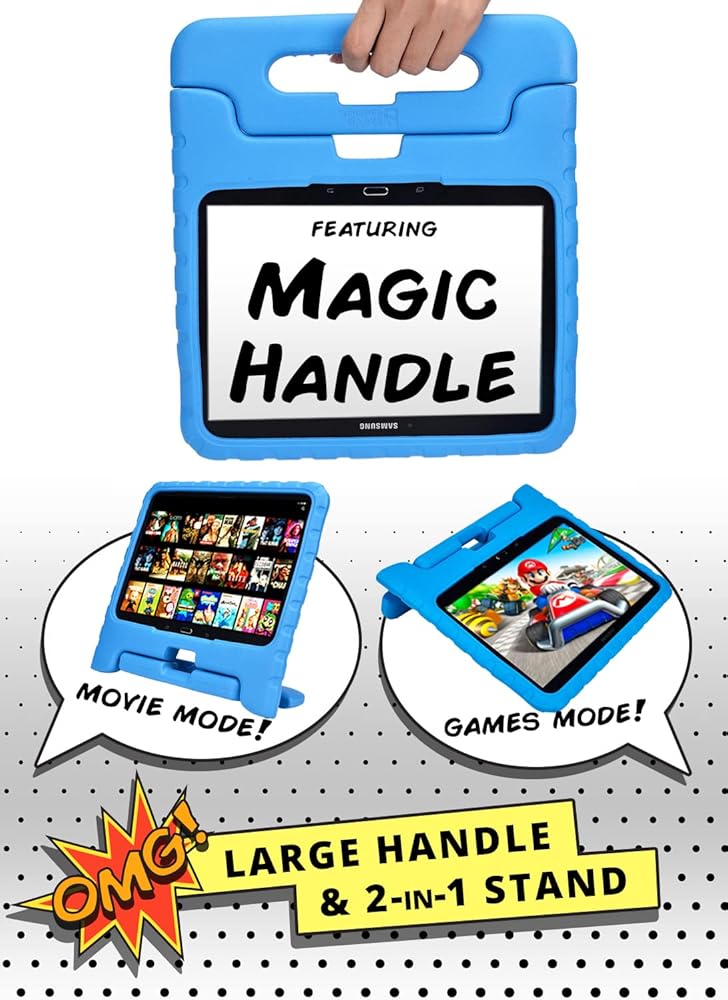 مقبض كبير مناسب للأطفال وحامل 2 في 1: مقبض سهل الإمساك مصمم لأيدي الأطفال؛ هدية مثالية للأطفال الصغار والأولاد والبنات والمصابين بالتوحد والاحتياجات الخاصة؛ قم بطي المقبض في حامل iPad مزدوج الزاوية.