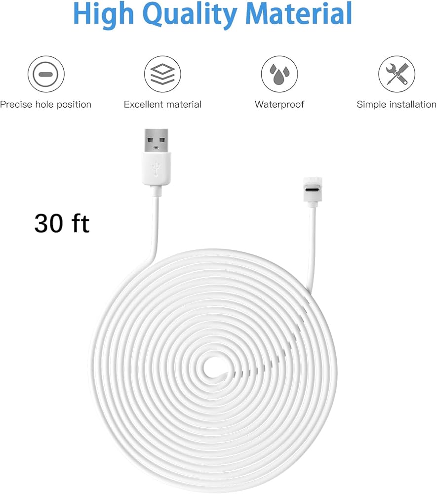 Enough length:The cable allows you to easily plug it into an electrical outlet inside or outside your house, even if the wyze battery cam pro camera is a little further away.