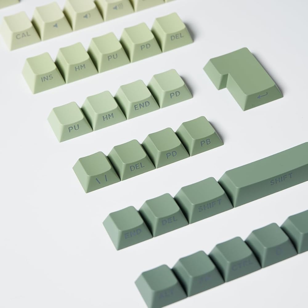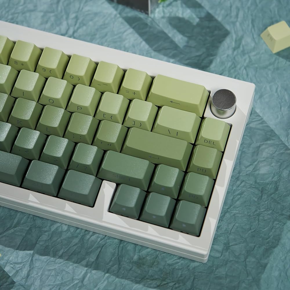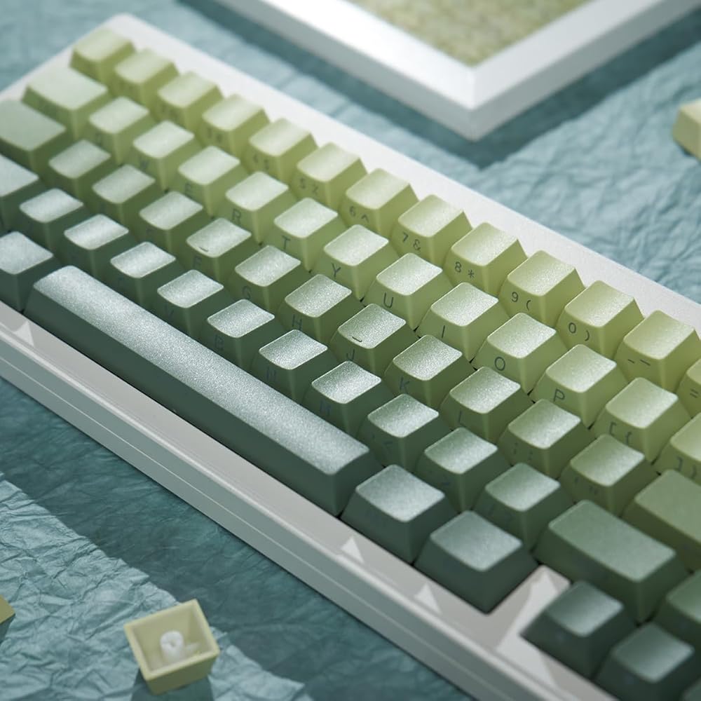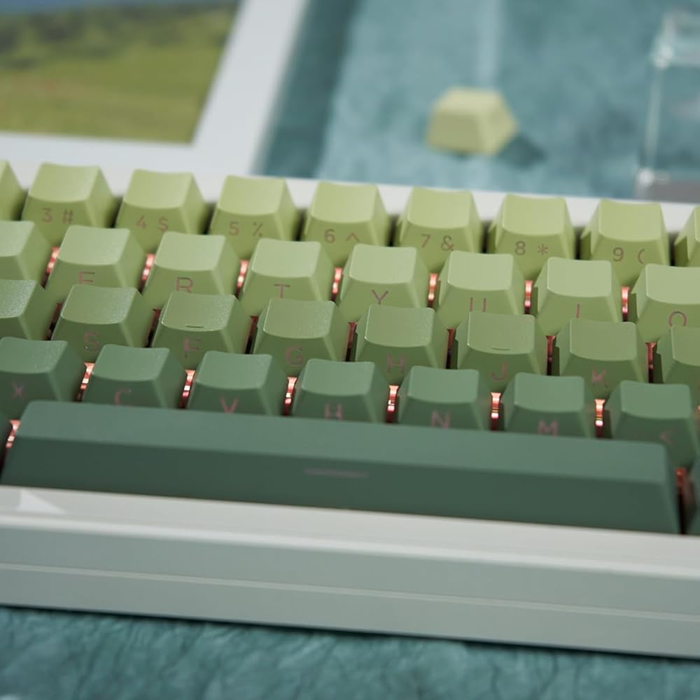 أغطية المفاتيح المطبوعة الجانبية: تتميز أغطية المفاتيح هذه بتصميم محفور على الجانب مع لون أخضر متدرج للحصول على مظهر كلاسيكي. يمكن لضوء RGB الخاص بلوحة المفاتيح أن يخترق أغطية المفاتيح هذه ليمنحك تأثيرًا بصريًا مذهلاً.