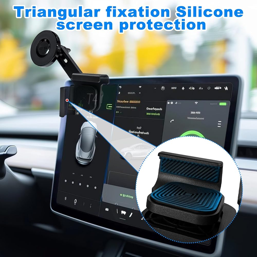 حامل هاتف سيارة مغناطيسي لـ Tesla، حامل هاتف للطراز 3 (2024-2017)/الطراز Y (2024-2020)، حامل هاتف iPhone، حامل حامل هاتف قابل للتعديل بزاوية 360 درجة، لحامل MagSafe للسيارة لـ Tesla، مع حلقة مغناطيسية