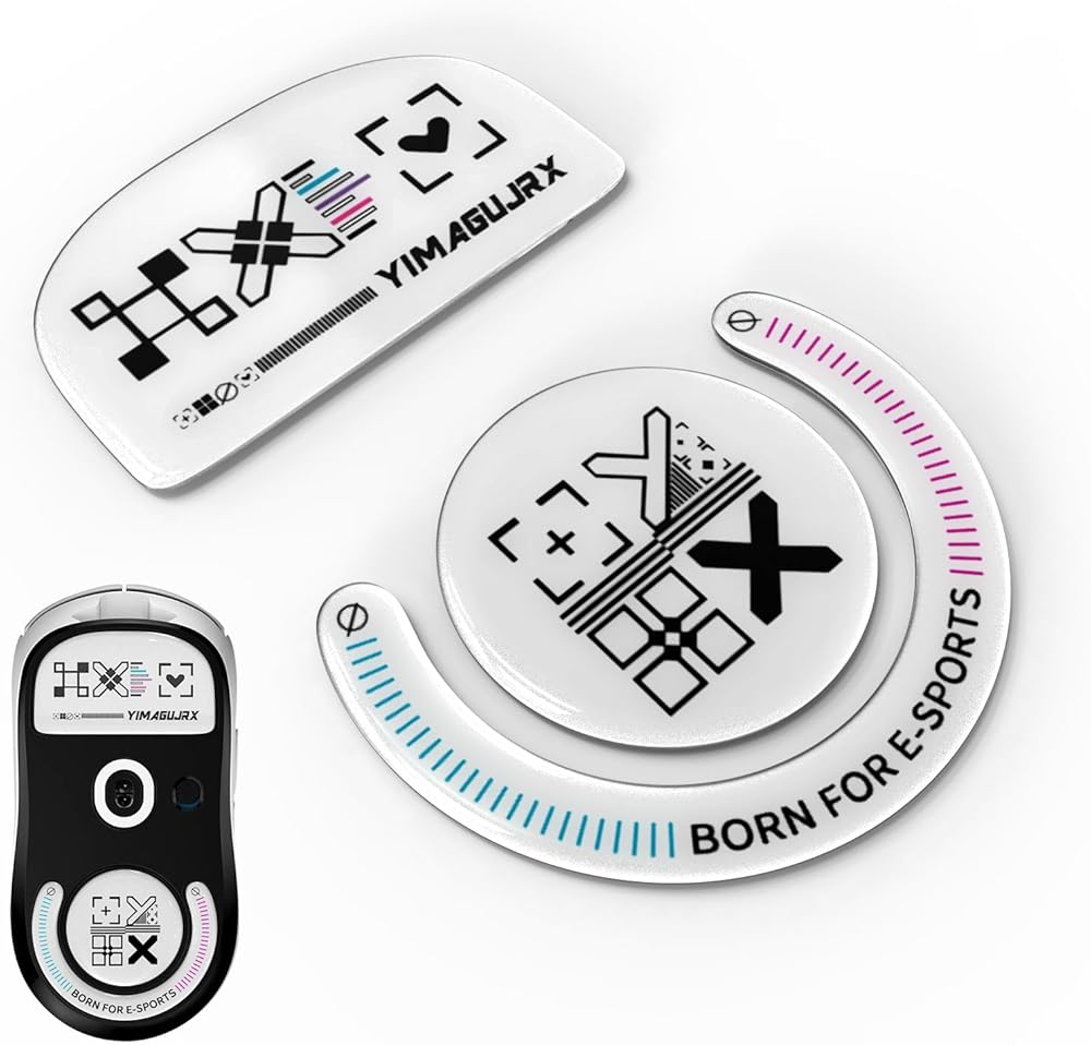 YIMAGUJRX زلاجات ماوس زجاجية لـ Logitech G Pro X Superlight، أسرع وأنعم أقدام فأرة، بداية سريعة، مجموعة تحديد المواقع الدقيقة (مطبوعات بيضاء)