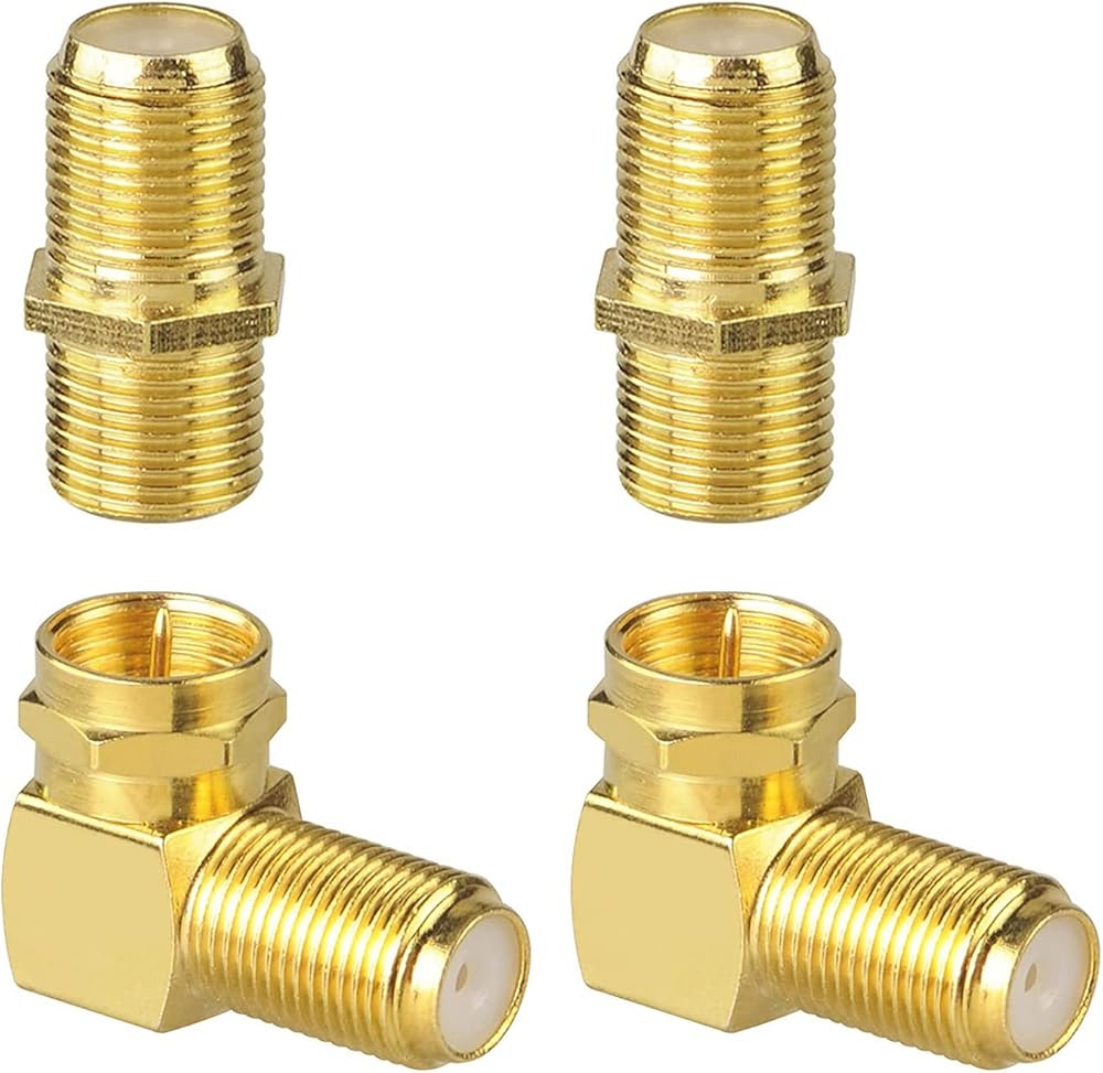 Coaxial Cable Female Connector Bundle with 90 Degree Male to Female Adapter, Right Angle F-Type RG6 Adapter Female to Female for TVCables