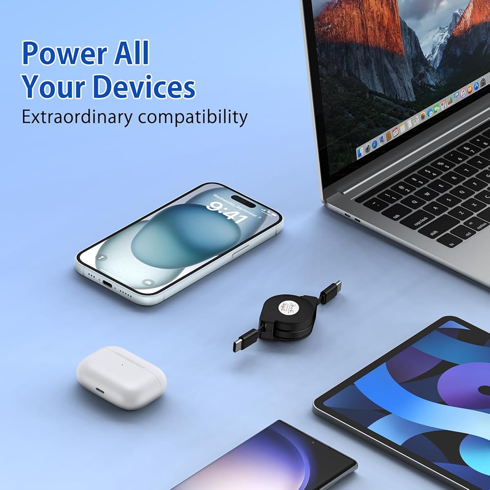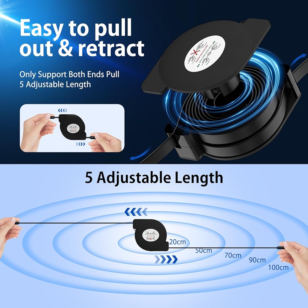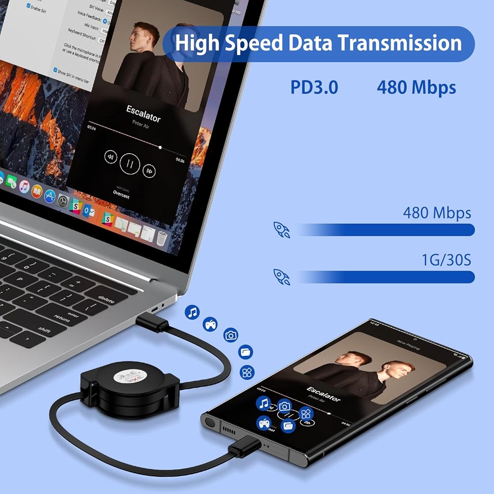 • ❤【Fast Charging & Data Transmission】:retractable usb c fast charging cable supports fast charging phone charging of 5V/3A for up to 18W of charging power; iPhone 15 Pro charger cable compatible smartphones and tablets quicker than standard USB power with the usb c cable pd fast charge; iphone 15 pro max charger fast charging cable supports a data transfer rate of up to 480Mbps for syncing or transferring files between devices,supports charging while playing.