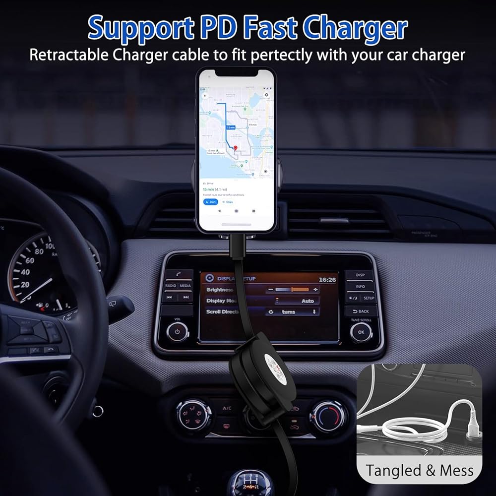 Retractable USB C to USB C Fast Charging Cable for Car Android Auto Phone USB Type C Power Cord