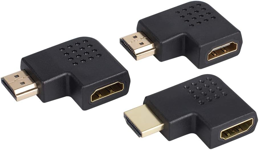 YuCool 9 حزمة محول HDMI بزاوية، 90 و270 درجة عمودي مسطح يسار ويمين 90 درجة ذكر إلى أنثى محول HDMI موسع ومحول أنثى إلى أنثى - مطلي بالذهب
