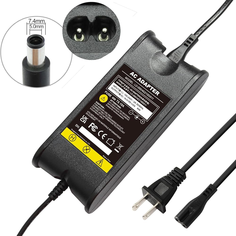 شاحن محول طاقة تيار متردد من Futurebatt لجهاز Dell Studio 1435، 1440، 1450، 1457، 1458، 1535، 1536، 1537، 1555، 1557، 1558، 1569، 17 1735، 1737، 1745، 1747، 1749 سلك إمداد الطاقة