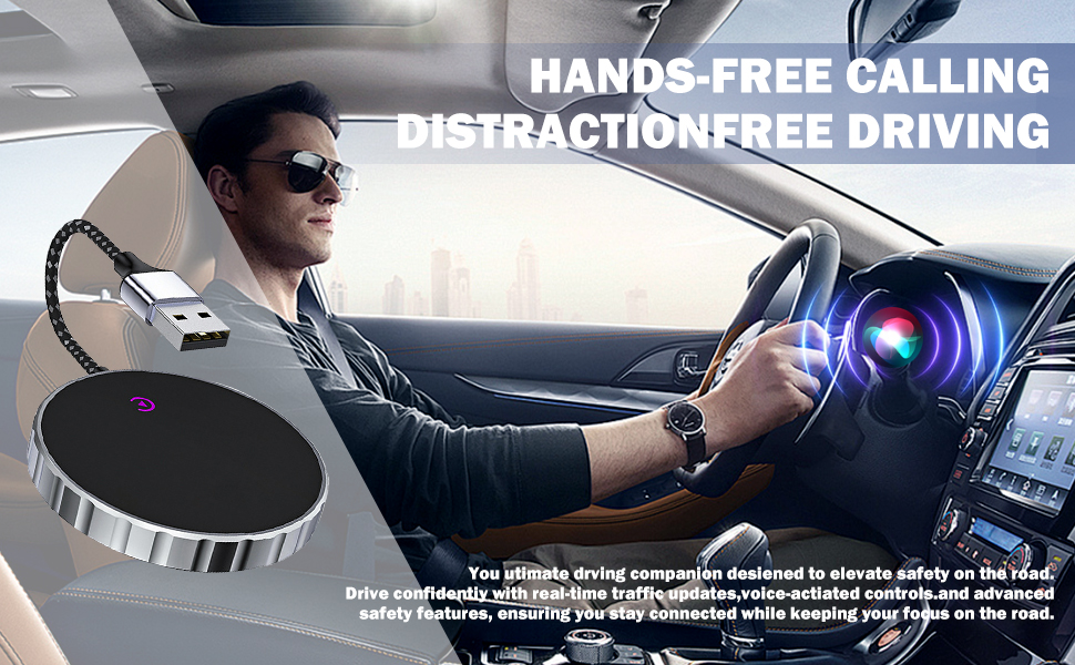 (4) القيادة التلقائية بالكامل: بعد التثبيت الأول، سيبدأ هذا المحول تلقائيًا ويتصل بسرعة بجهاز iPhone عند بدء تشغيل محرك السيارة. حتى إذا كان هاتفك في جيبك أو حقيبة ظهرك، فإن وحدة WIFI المدمجة بسرعة 5 جيجا هرتز ستُنشئ محول تشغيل لاسلكي للتعرف على هاتفك بسرعة. يدعم هذا الدونجل أيضًا التحكم الصوتي وعجلة القيادة وشاشة اللمس وتشغيل المقبض. يمكنك استخدام SIRI للمساعدة في القيادة، مثل الاستماع إلى الموسيقى والتنقل وقراءة الرسائل النصية.
