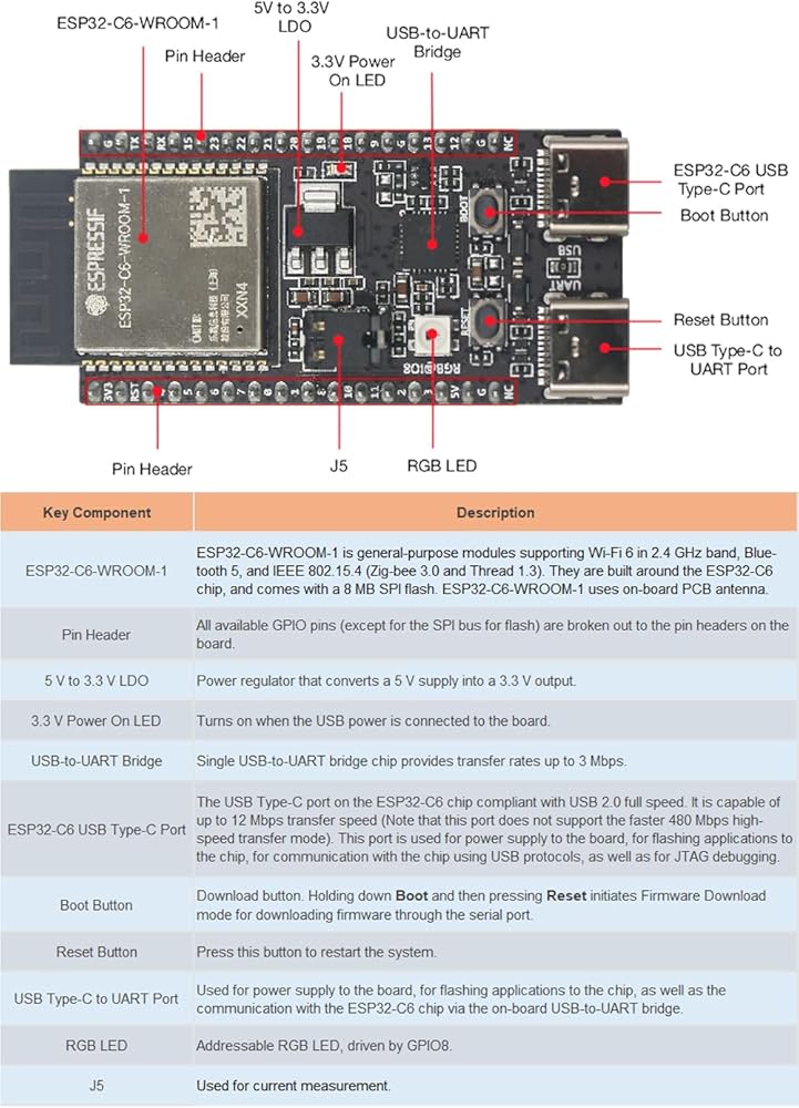1 X ESP32-C6-DevKitC-1 N8 development board