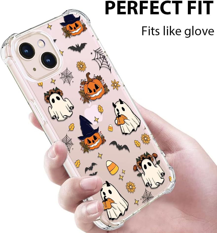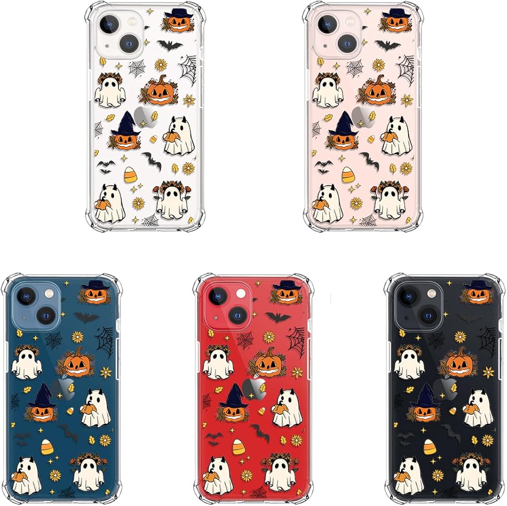 COBATREE for iPhone 14 Pro Max Phone Case, Clear Case with Halloween Pattern for iPhone 14 Pro Max Case Bumper Protective Shockproof Soft Cover Case for iPhone 14 Pro Max 6.7”-Cute Pumpkin Ghost