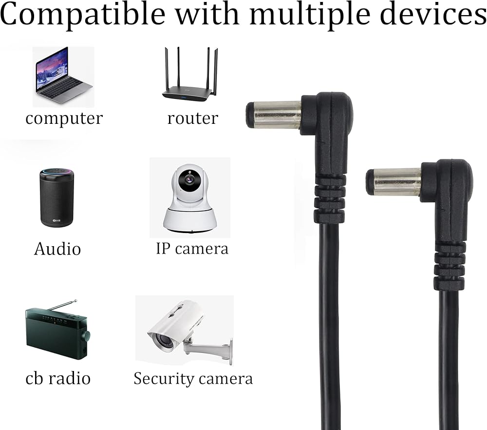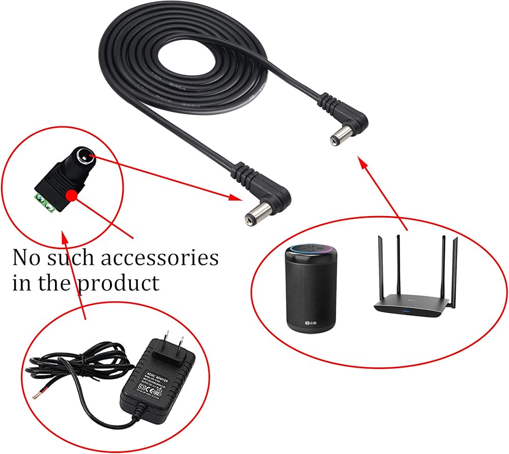 [Product included in the package]:Double elbow DC 5.5mm x 2.1mm Cable DC 5.5mm x 2.1mm 90 Degree Right Angle Male to Male DC L Type Male to Male Power Adapter Cable<br>Gauge: 22AWG/5-24V copper wire; Length:5ft (1.5m);Quantity: (2 pack)