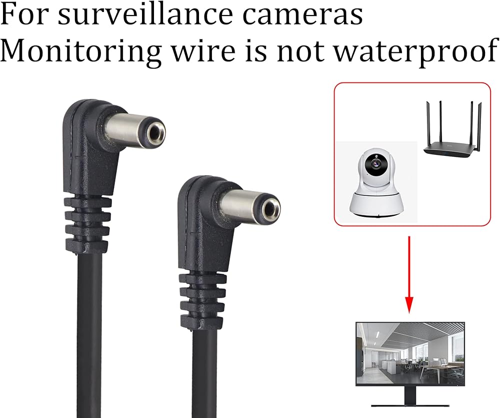 "[Main applications]:2.1mm x 5.5mm L type Male to 2.1mm x 5.5mm L type Male Extension Cable For 5-24V extension cable This 5.5 x 2.1 mm male to male DC power cable cord is widely used in IP camera, CCTV surveillance security camera, LED strip, DVR, router, invoice printer, low voltage application equipments etc.