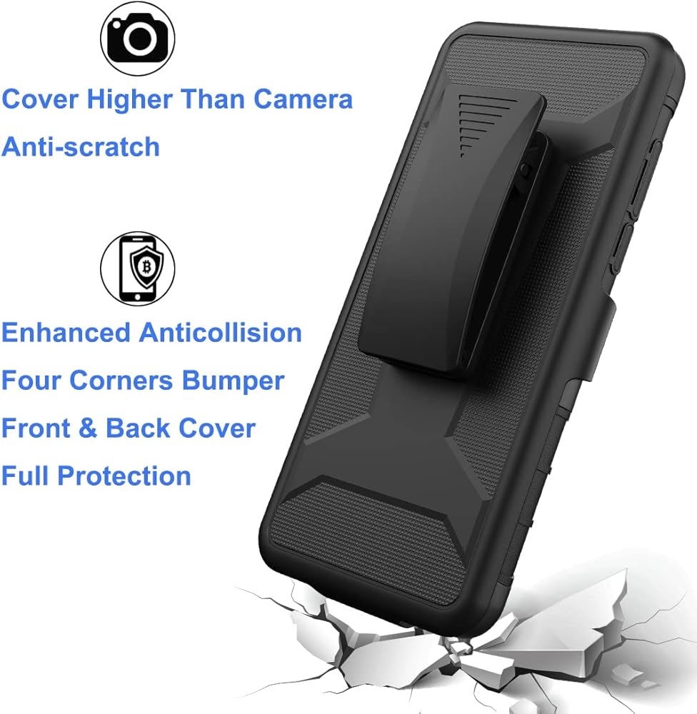 • Handsfree Kickstand - watch video without holding. LOCKING SWIVEL BELT CLIP, rotate 180 degrees to offer carrying convenience. Steadily clamp on your belt, bag, pocket and jeans. Built-in cleaning kit to clean the screen. Slide the shell and holster apart from top to bottom