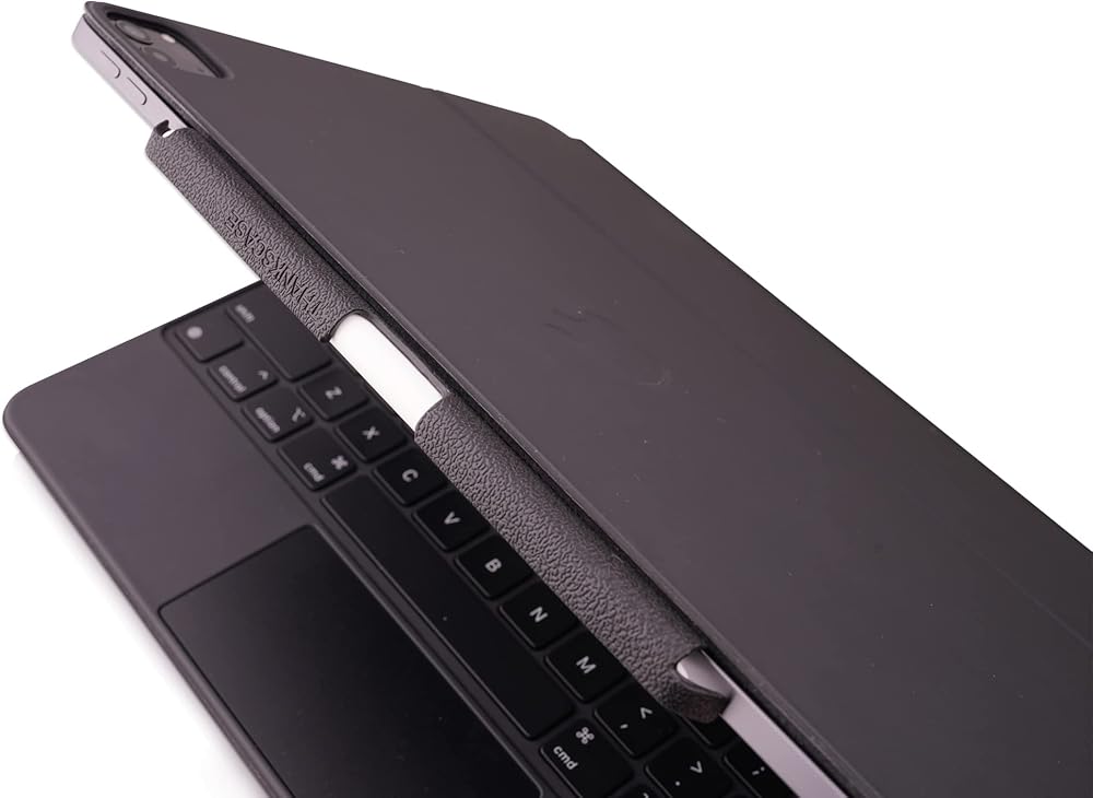 حامل أقلام رصاص سحري من Thankscase متوافق مع لوحة المفاتيح السحرية، ولوحة المفاتيح، وحافظة Smart Folio، مصنوع يدويًا لحامل أقلام Apple مع طلاء مضاد للخدش، وجلد جلدي مدمج. (جلد أسود SC)