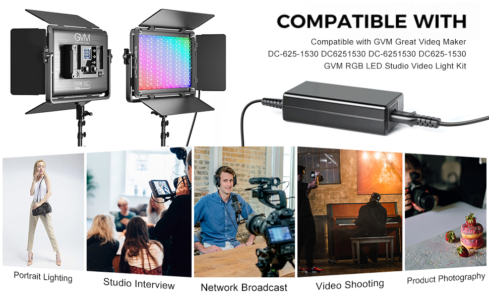 【التوافق: محول الطاقة لـ GVM Great Videq Maker DC-625-1530 DC6251530 DC-6251530 DC625-1530 GVM RGB LED مجموعة إضاءة فيديو الاستوديو.