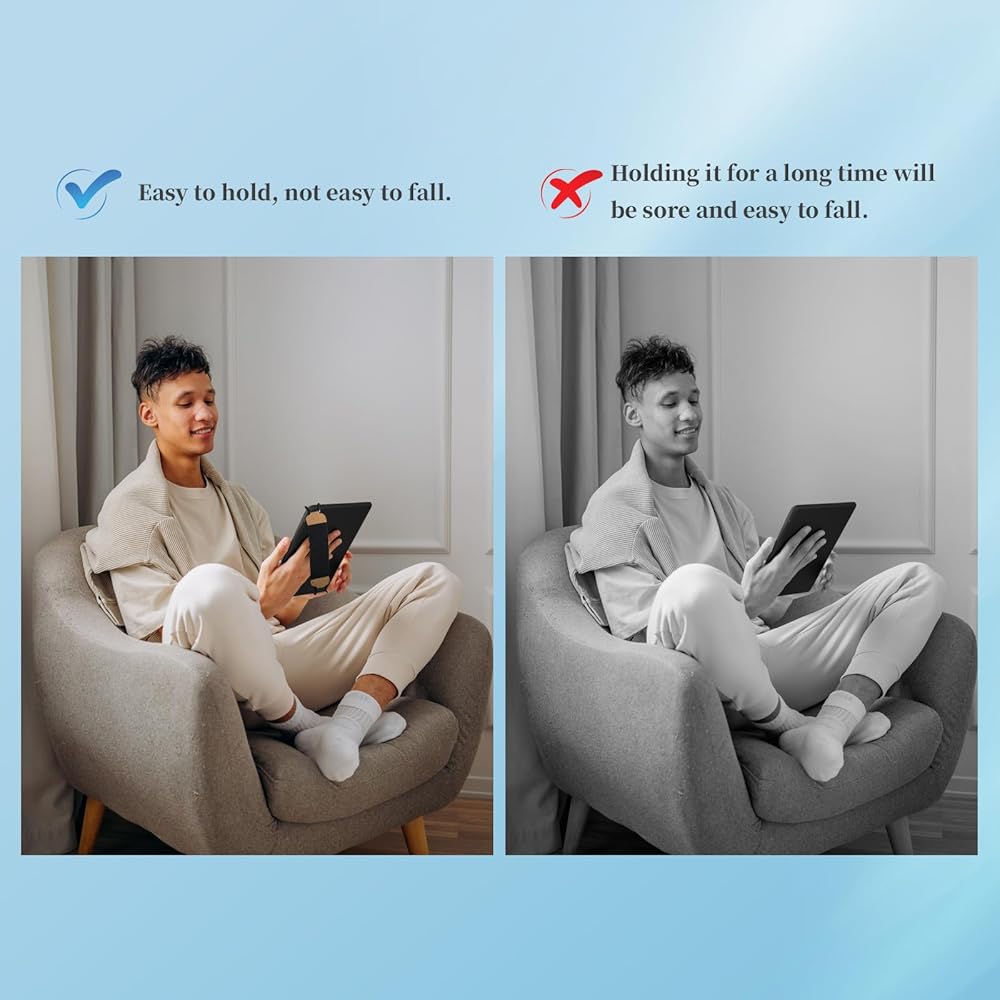 • 【حل قرحة اليدين】 عندما تحتاج إلى استخدام جهاز Kindle الخاص بك لفترة طويلة، ما عليك سوى ربط حزام اليد كيندل الخاص بنا، ويمكنك حمل جهاز Kindle الخاص بك بسهولة. لا داعي للقلق بشأن السقوط. يخفف التوتر من يديك.