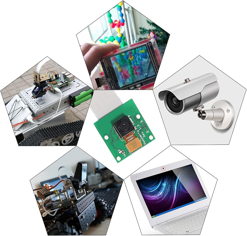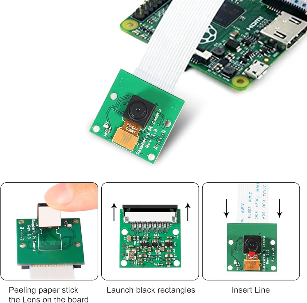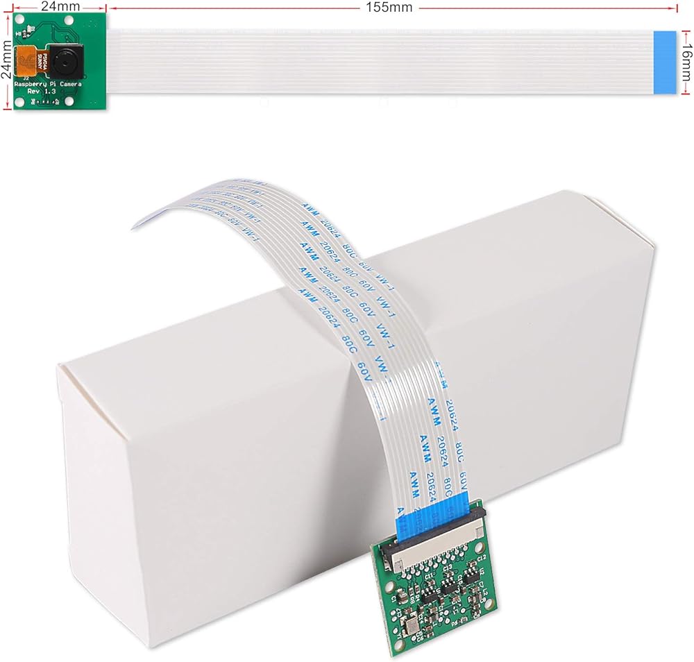 وحدة كاميرا 5 ميجابكسل لمستشعر Raspberry Pi 1080P HD OV5647 مع كابل شريط دبوس 15 سم و200 سم لطراز Raspberry Pi A/B/B+، Pi 2B وRaspberry Pi 3B 3B+، Pi 4B