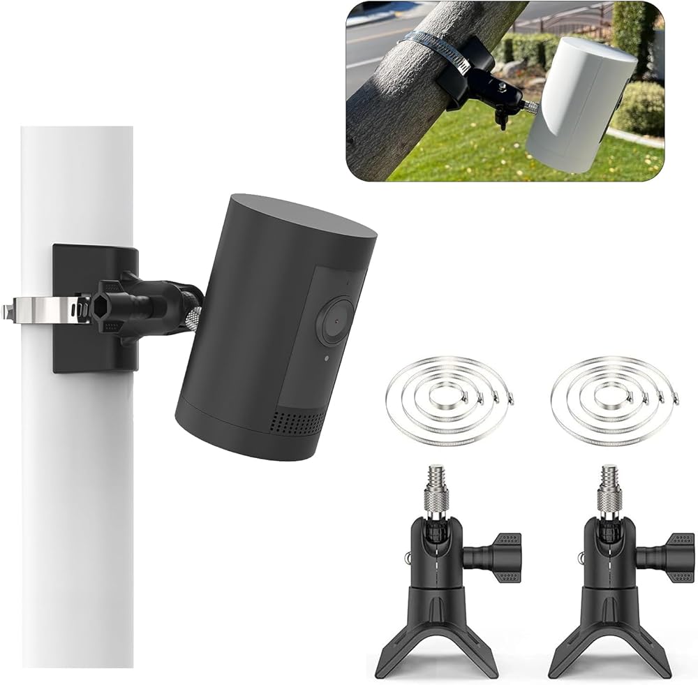 Universal Pole Mounting Mount Bracket Suitable Cameras-This universal pole mount is compatible with most security cameras that have a built-in 1/4-inch threaded screw hole, including popular brands of mount adapters like Ring, Eufy, Arlo, Google Nest, Wyze, and Simplisafe.