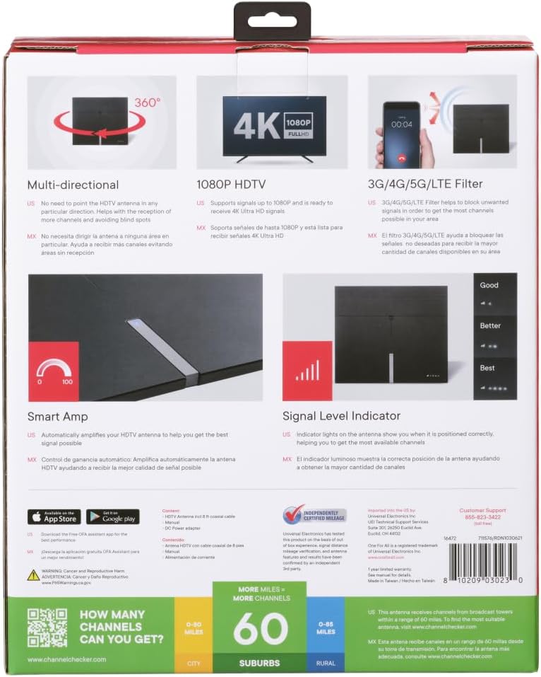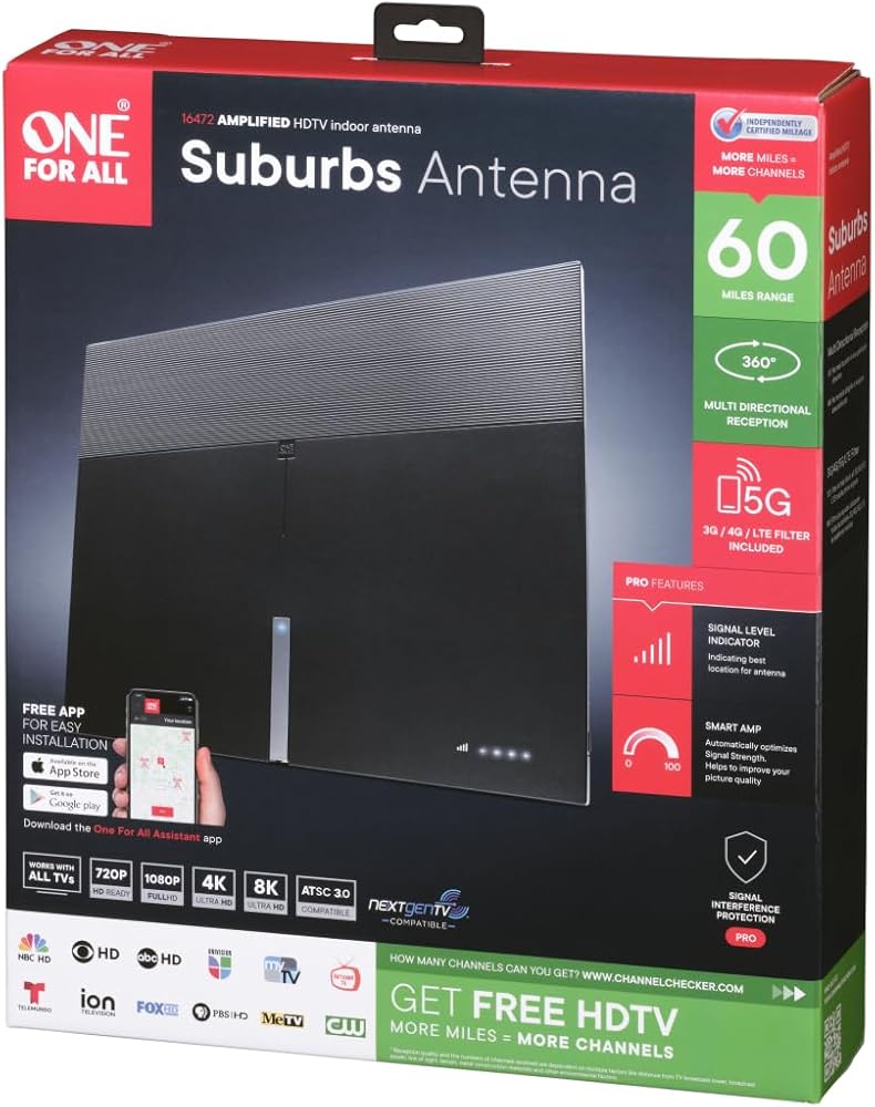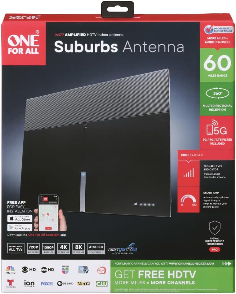 📡 استقبال عالي الأداء: استمتع بإشارات تلفزيونية مذهلة وواضحة مع هوائي One for All 16472 HDTV، الذي يتمتع بنطاق استقبال رائع يبلغ 60 ميلًا ويساعدك على الحصول على أفضل قوة إشارة لقنواتك المفضلة.