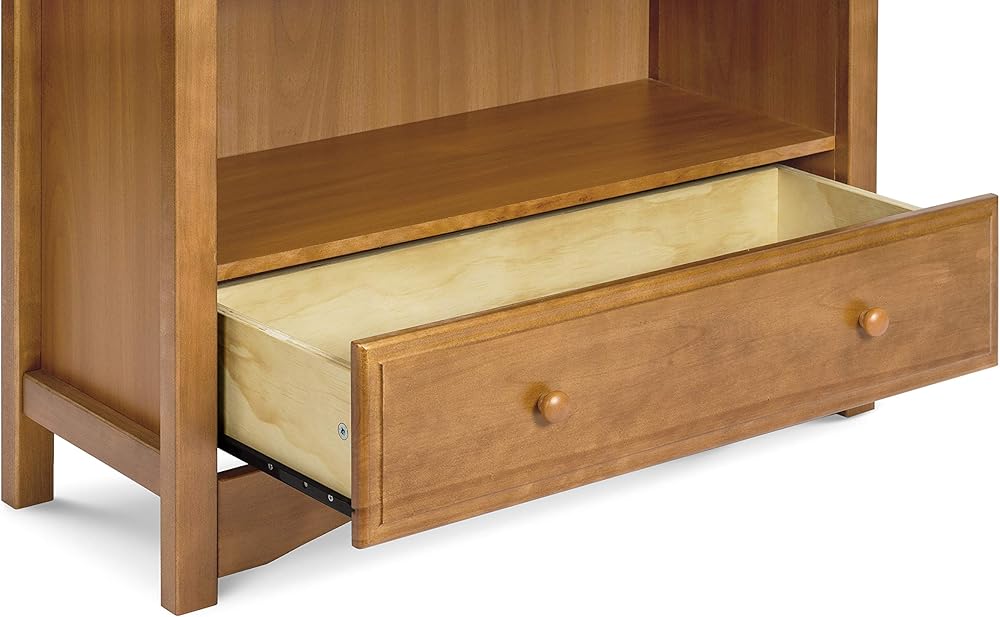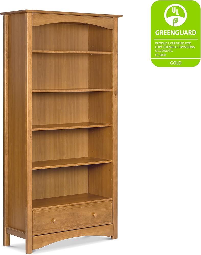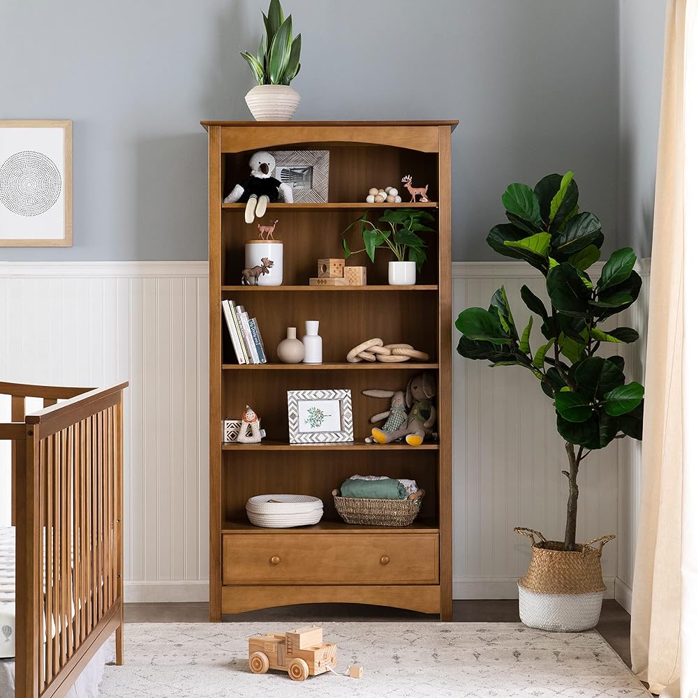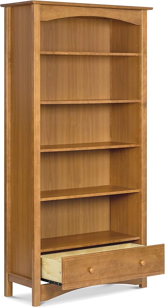 The MDB Bookcase provides five adjustable-height shelves and one smooth and spacious drawer. Keeping your child's favorite books and toys handy, the bookcase brings timeless charm to his or her room with its classic look and gentle curves. The MDB Bookcase is available in five rich and traditional finishes. Its versatile style complements a range of nursery decor.