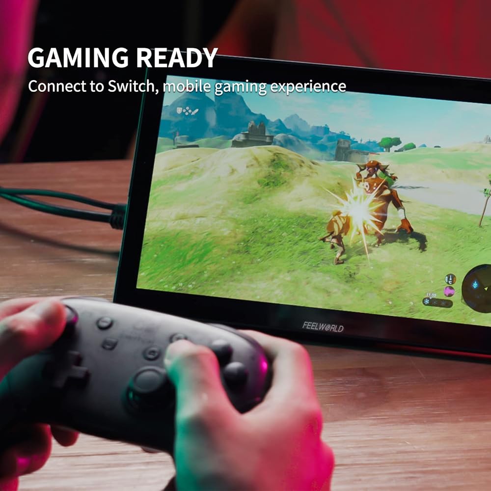 شاشة محمولة FEELWORLD DH101 مقاس 10.1 بوصة، شاشة كمبيوتر خارجية مع مكبرات صوت USB من النوع C HDMI مزدوجة لأجهزة الكمبيوتر المحمول وأجهزة الكمبيوتر المحمولة وهاتف MAC وRaspberry Pi وألعاب PS4 PS5 Xbox Switch
