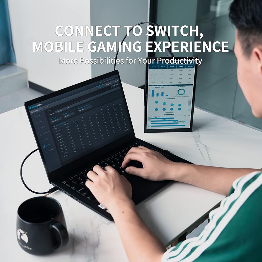 【شاشة محمولة مقاس 10.1 بوصة】لوحة IPS عالية الوضوح مقاس 10.1 بوصة 1920 × 1200 مع 16.7 مليون لون ومجموعة ألوان واسعة sRGB، مما يوفر لك صورة وفيديو عالية الوضوح وملونة.