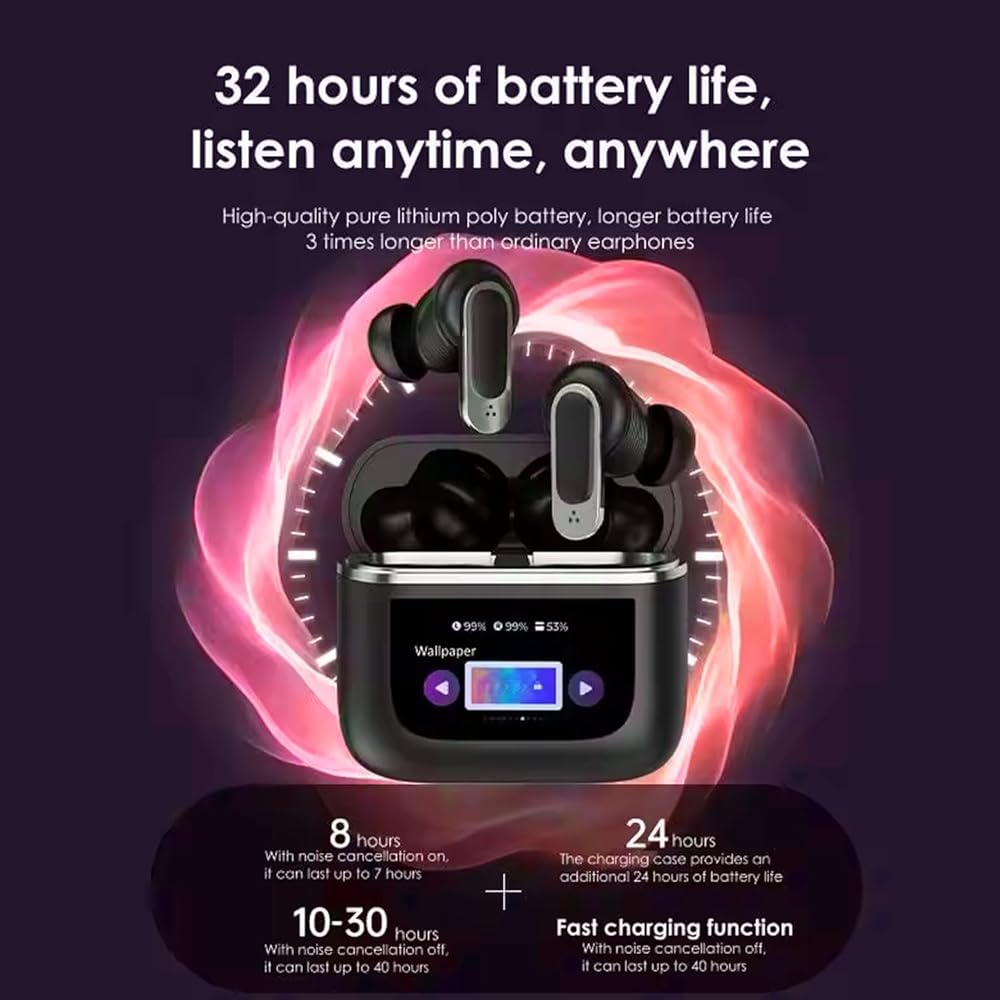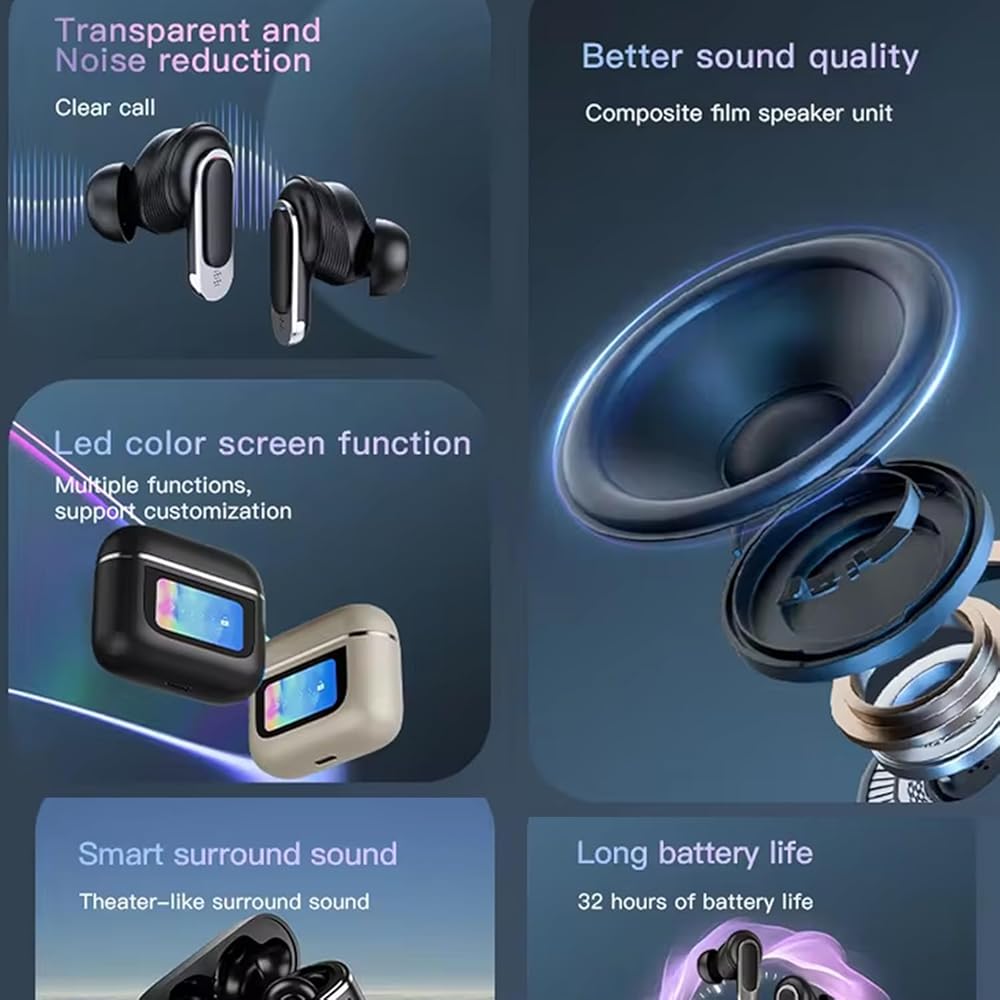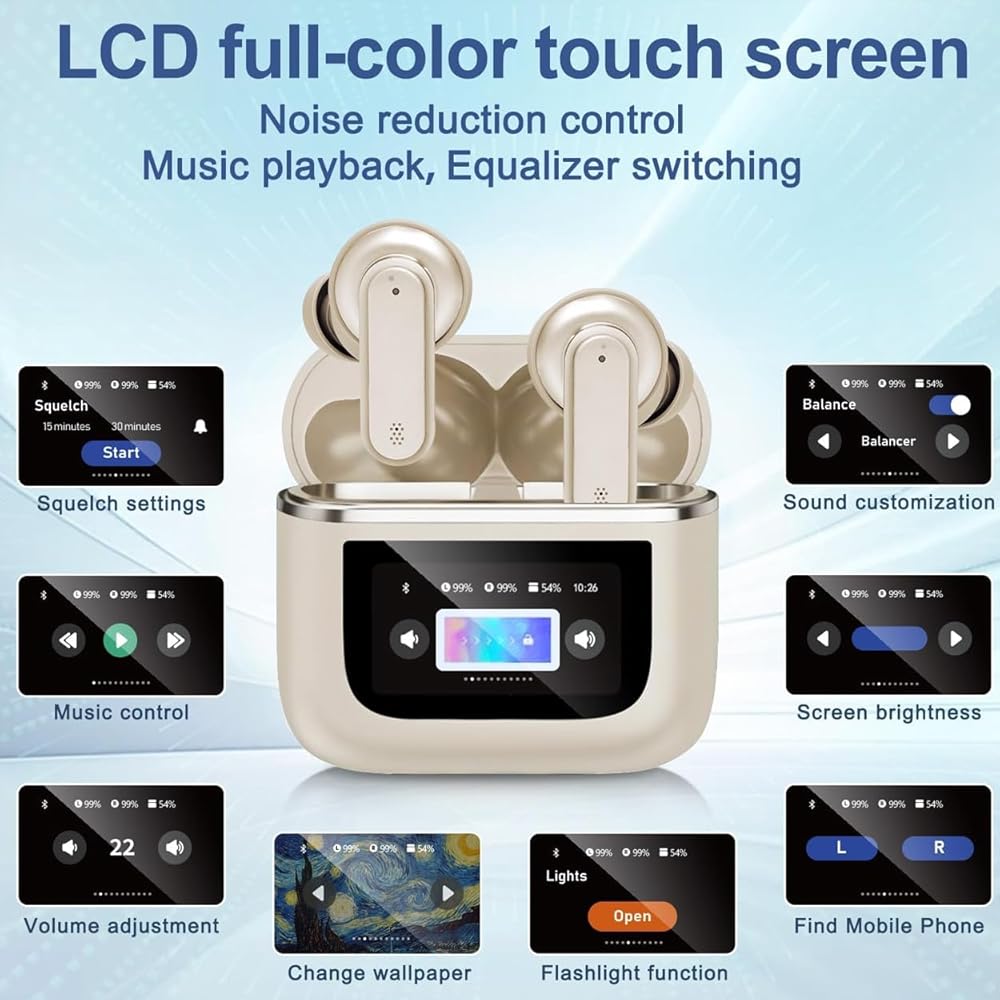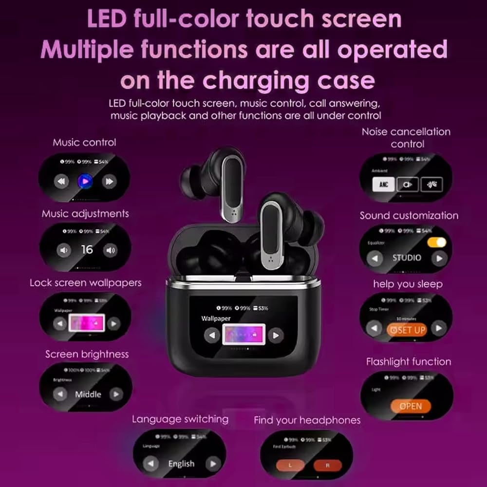 • 🎧 شاشة لمس LCD كاملة الألوان: تتميز سماعات الأذن V8 TWS لدينا بشاشة لمس LCD نابضة بالحياة وبديهية، مما يوفر تحكمًا سهلاً في إعدادات الصوت الخاصة بك ويوفر تجربة عالية التقنية وسهلة الاستخدام. مثالي للمستخدمين المتمرسين في مجال التكنولوجيا والذين يقدرون التصميم الأنيق والحديث.