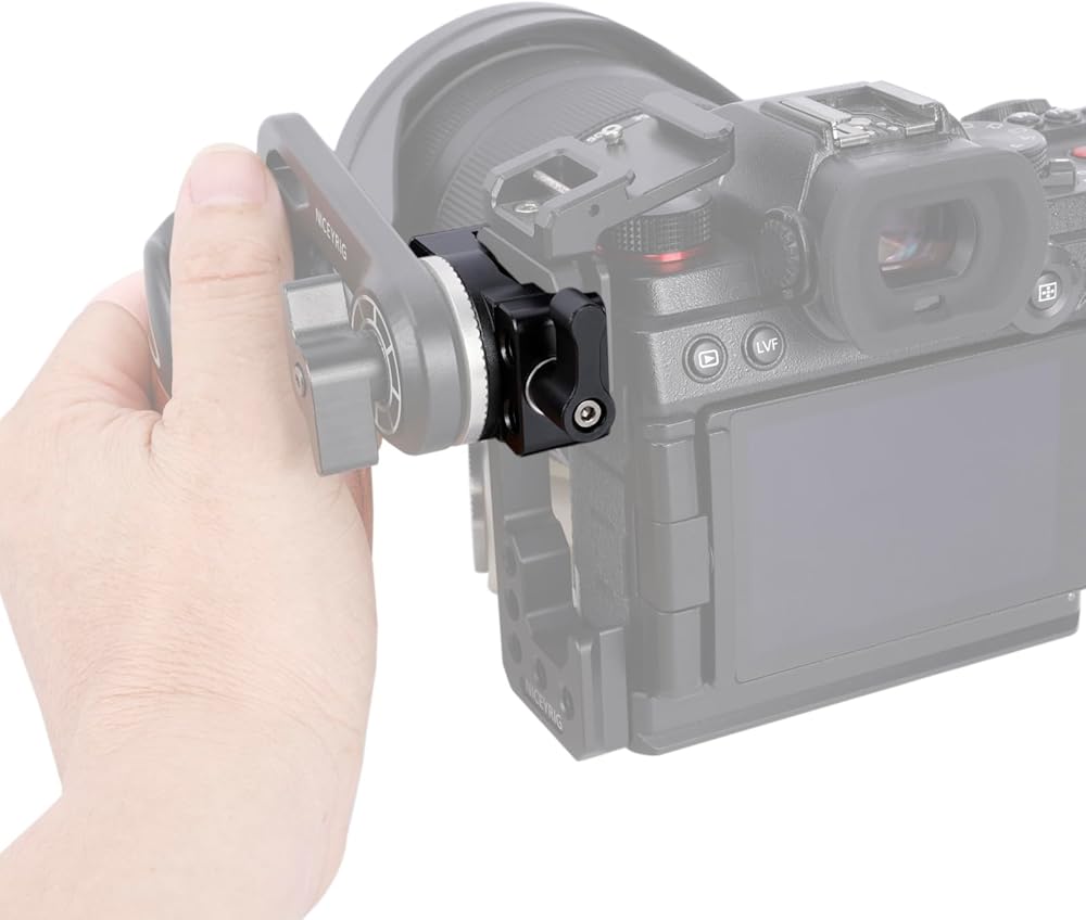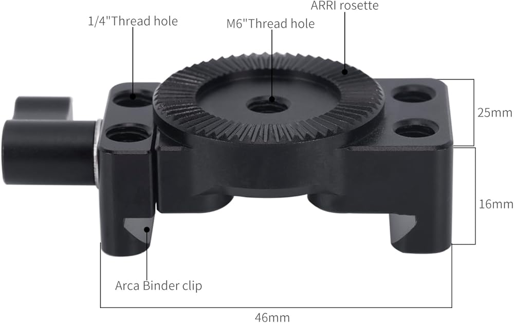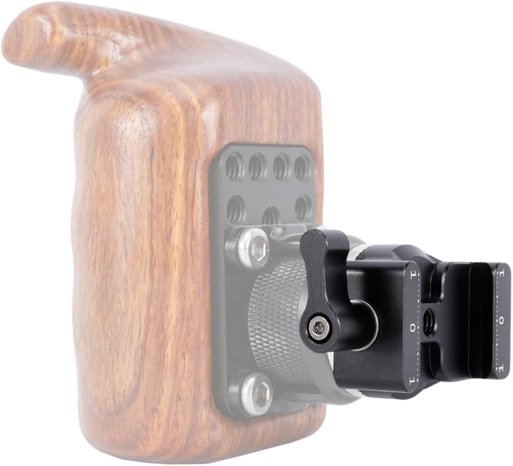 The Quick Release Clamp for ARCA-Style to Rosette Mount Adapter 585 is specially designed for L bracket of camera cage, so as to quickly connect rosette mount handle, optional Niceyrig Wooden Handle Grip 424/149, Niceyrig 252/255.
