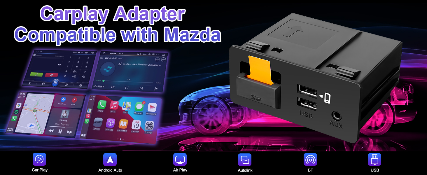 محول Geloo Carplay، مجموعة Carplay & Android Auto التحديثية المتوافقة مع Mazda 2/3/6/CX3/CX5/CX9/MX5 2014-2021 سنة، TK78-66-9U0C 00008FZ34 OEM Hub مجموعة التحديثية لنظام توصيل MZD