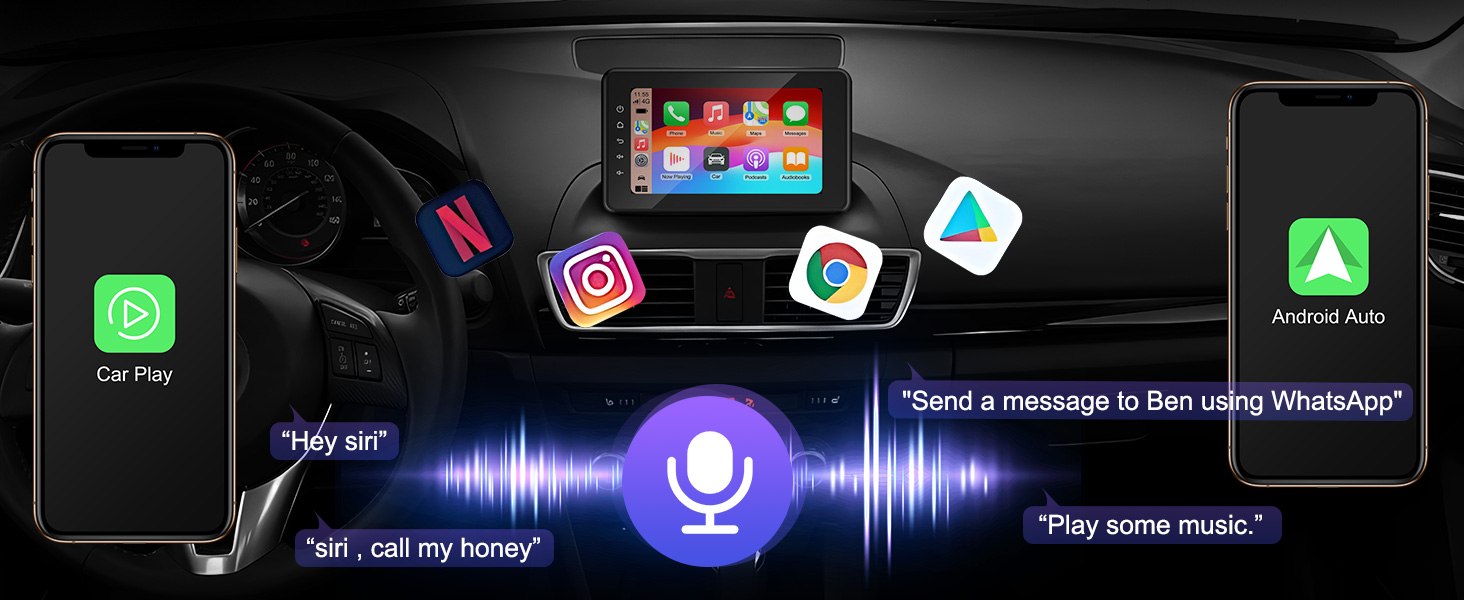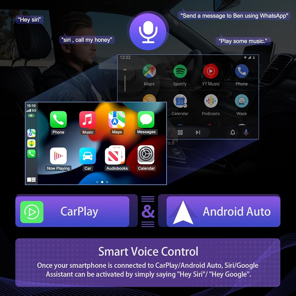 محول تلقائي للسيارة والأندرويد: CarPlay هو سائق مساعد قوي. يدعم نظام IOS ونظام Android. فهو يتيح لك استخدام وظائف هاتفك بشكل أكثر ذكاءً وأمانًا أثناء القيادة. يتيح لك الوصول إلى التنقل عبر الخرائط وجهات اتصال الهاتف والبريد الإلكتروني والإشعارات والموسيقى والمزيد بمساعدة مساعد صوتي ذكي (Siri أو Google Assistant). مع إبقاء يديك حرتين، يمكنك تحقيق عملية قيادة آمنة تمامًا