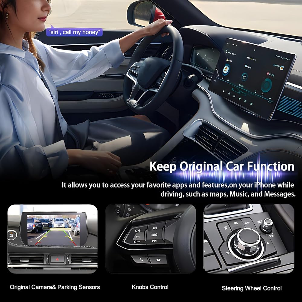 حافظ على وظيفة السيارة الأصلية جيدًا: يمكنك التبديل بحرية بين نظام السيارة الأصلي ونظام CarPlay/Android Auto، مما يدعم جميع وظائف نظام السيارة الأصلي، مثل العكس البانورامي 360 درجة. يدعم محول Carplay الذكي هذا أيضًا عناصر التحكم الأصلية في مقبض السيارة وعناصر التحكم الأصلية في زر عجلة القيادة، مما يسمح لك بالعمل دون ترك عجلة القيادة. جعل القيادة الخاصة بك أكثر أمانا