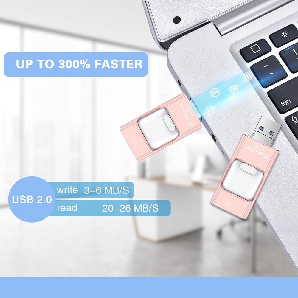 • ZARMST Photo Stick عبارة عن محرك أقراص USB بسعة 128 جيجابايت بتصميم 4 في 1 ومصنوع من مادة الألومنيوم الممتازة لضمان أقصى قدر من المتانة.