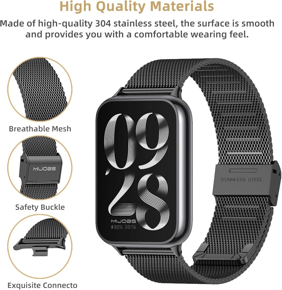 【مادة عالية الجودة من الفولاذ المقاوم للصدأ】: حزام Redmi Watch 4، xiaomi mi band 8 pro مصنوع من الفولاذ المقاوم للصدأ 304، موصل سبائك الزنك، شكل فريد وطريقة تركيب، طريقة الاتصال ثابتة ومستقرة. لا تقلق أبدًا بشأن سقوط جهاز تتبع اللياقة البدنية الخاص بك.
